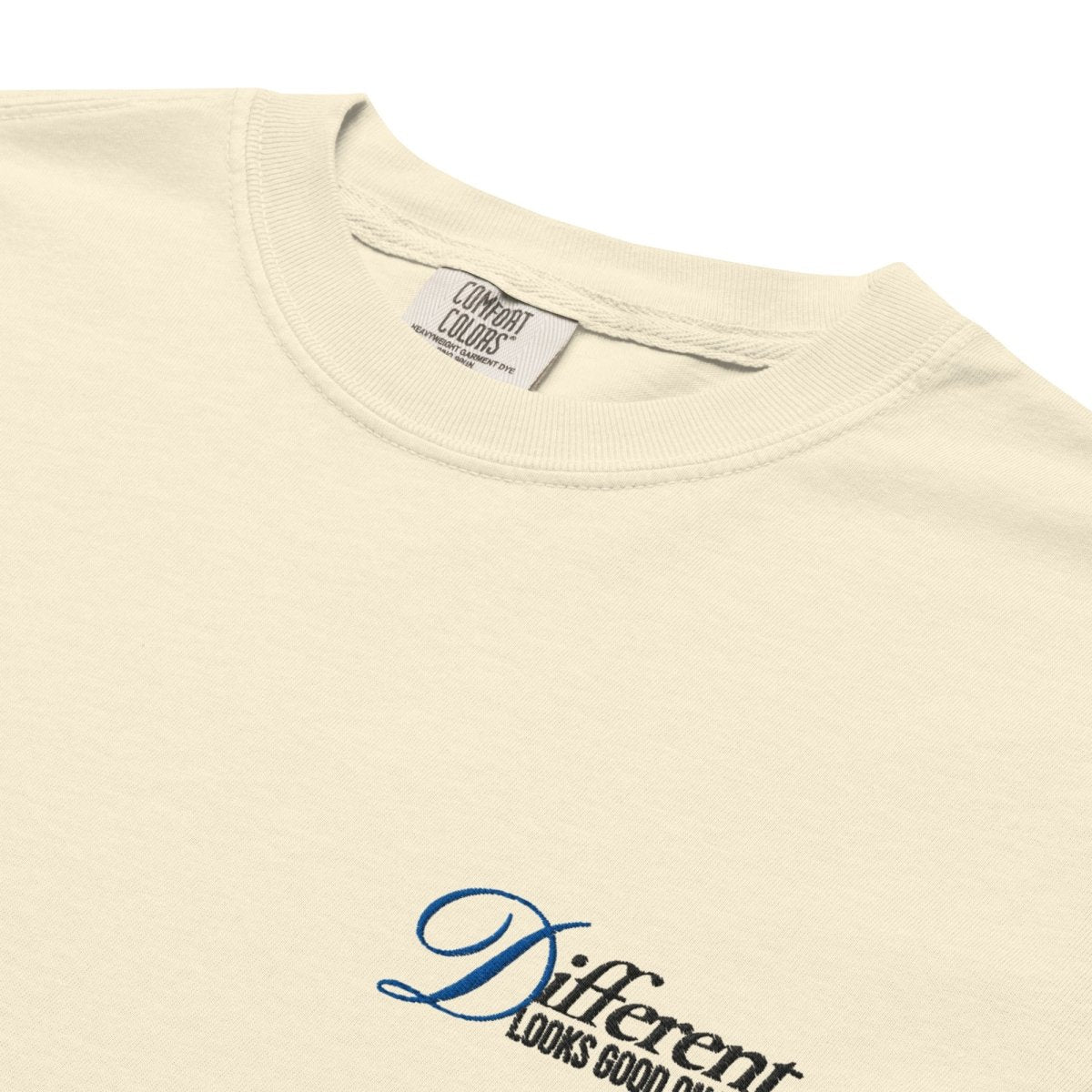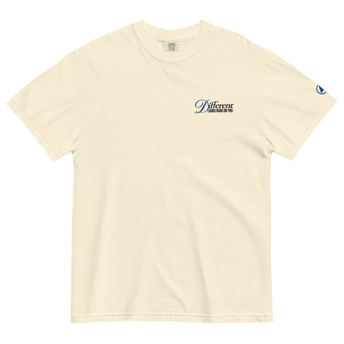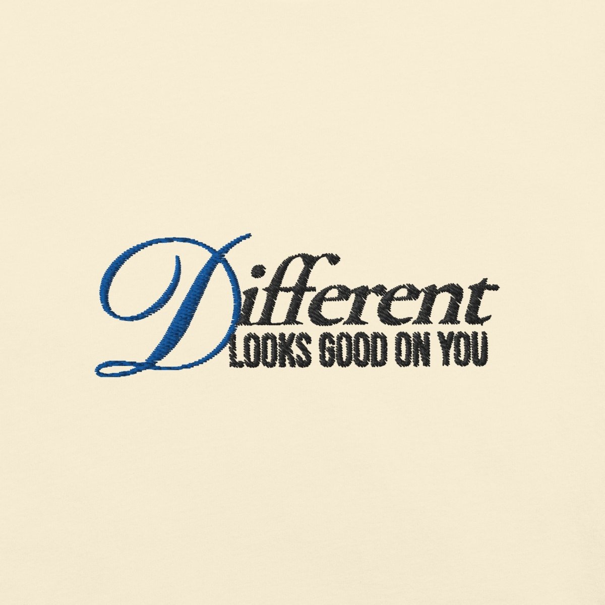• Left chest: "Different looks good on you" embroidery