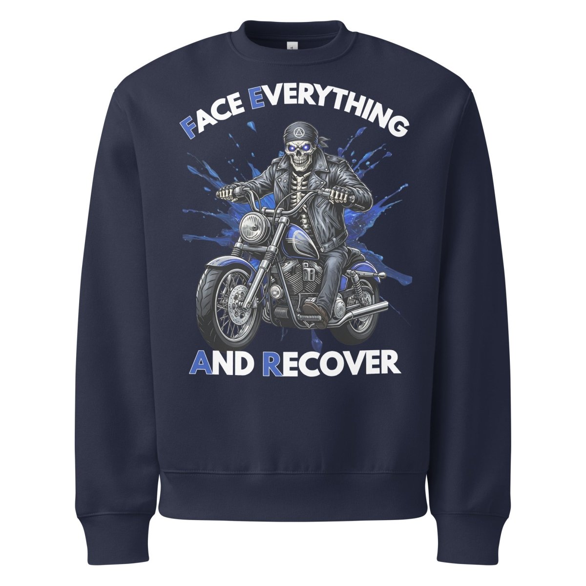 F.E.A.R. (Face Everything and Recover) Oversized Heavyweight Sweatshirt – Skeleton Biker Sobriety Statement