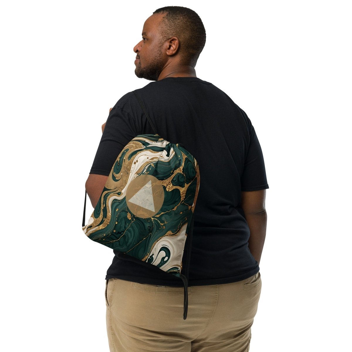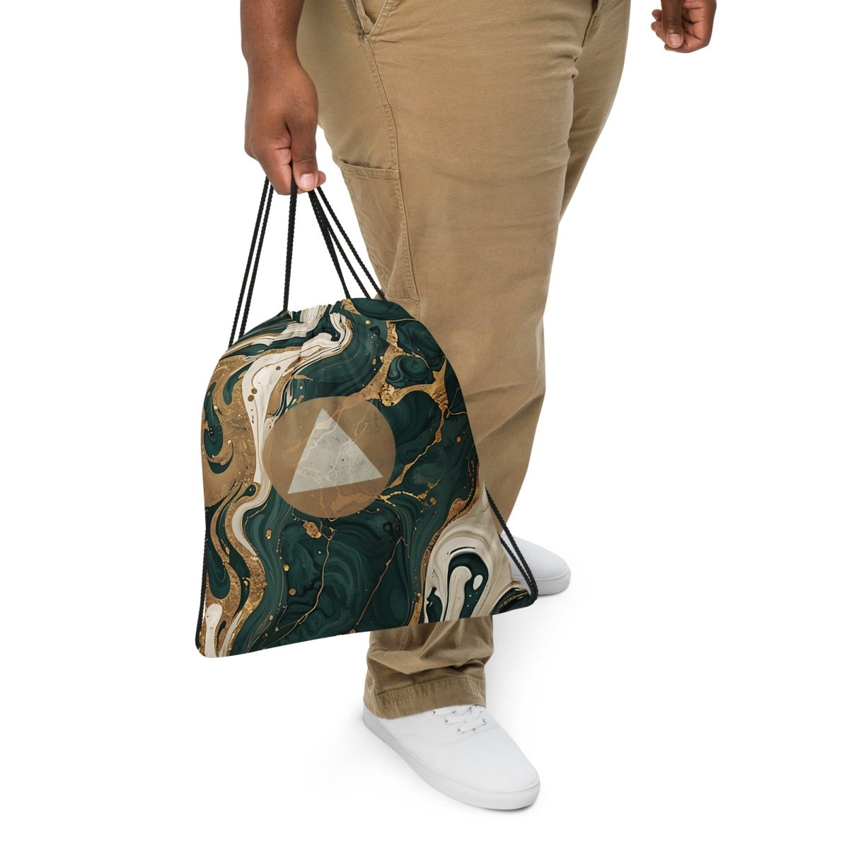 Lightweight, bold, and easy to carry — the Golden Flow Drawstring Bag combines modern street style with deep symbolism. Featuring the signature green-and-gold marble pattern and sobriety symbol, it’s perfect for the gym, recovery events, or casual use.
