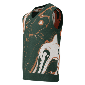 Timeless meets contemporary with the Golden Flow Knit V-Neck Vest — a sophisticated piece that merges soft texture, clean design, and symbolic intention. Featuring the signature green-and-gold marble flow and the sobriety symbol subtly integrated near the neckline, this vest embodies balance, growth, and conscious living.