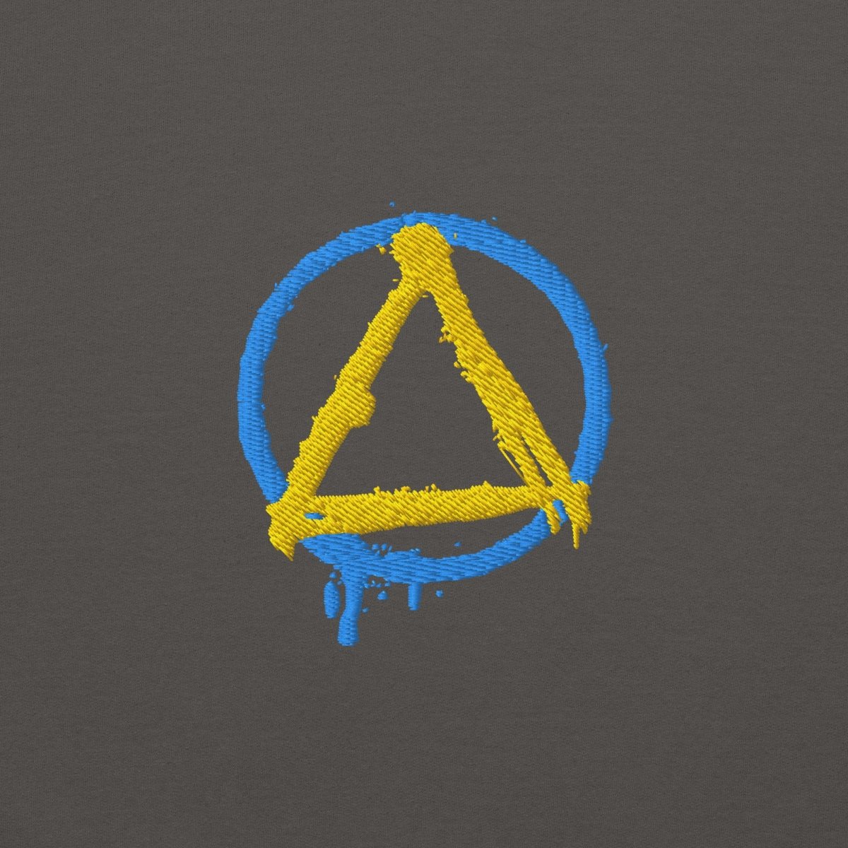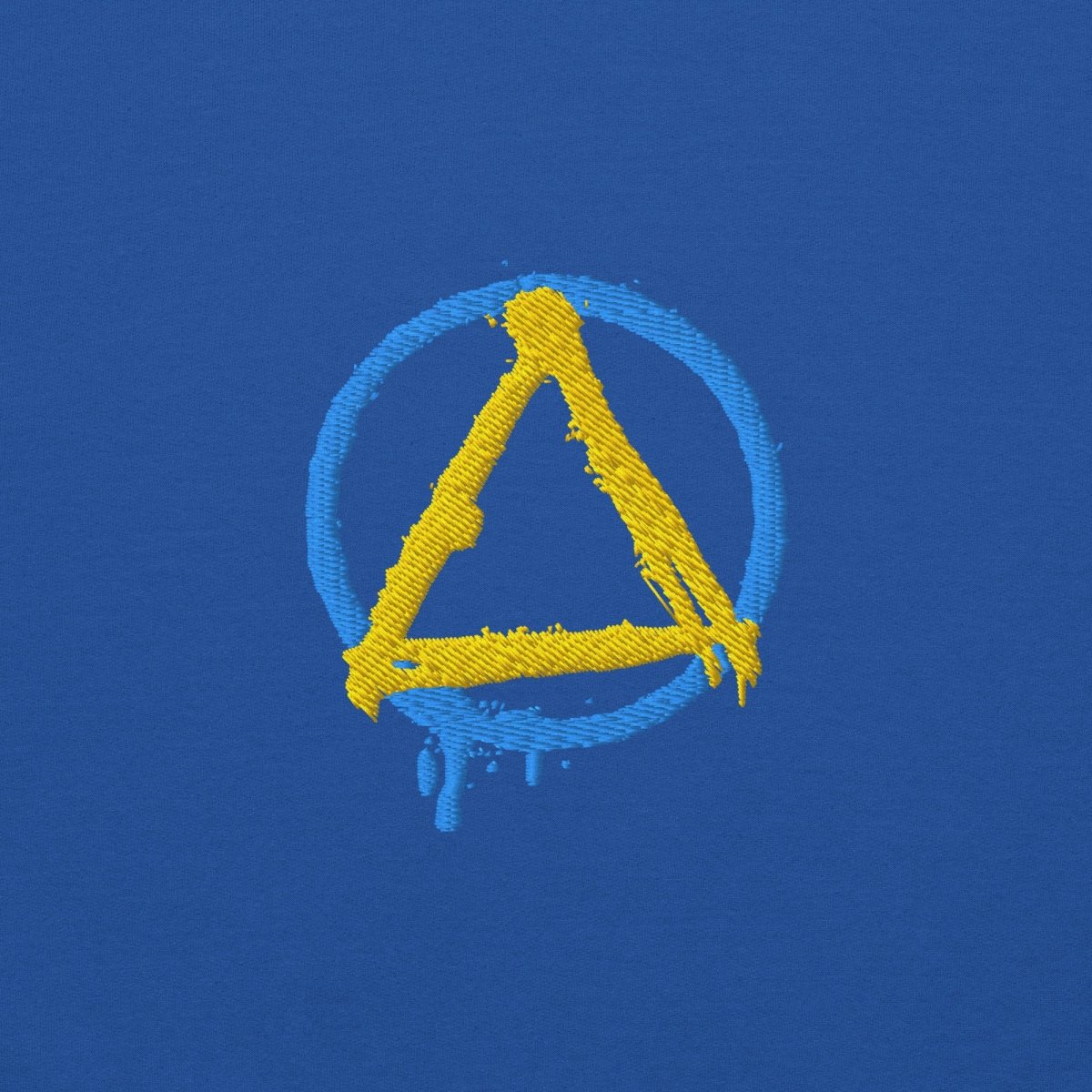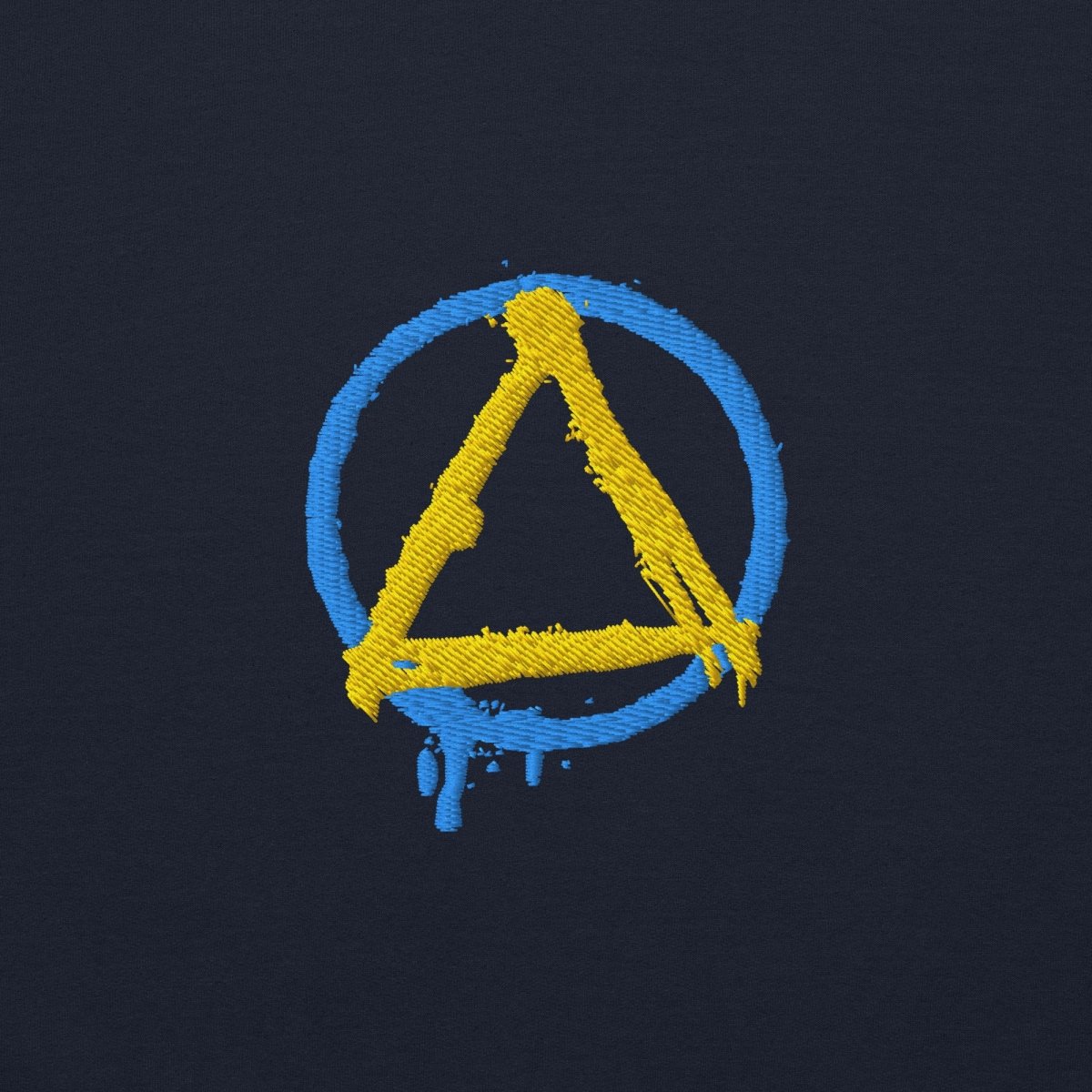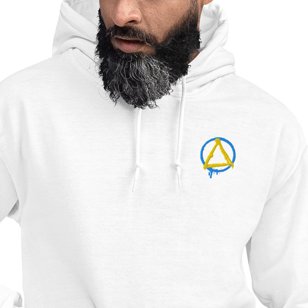 The Graffiti Sobriety Symbol Embroidered Hoodie transforms the iconic circle and triangle into raw street art. This isn't your standard sobriety symbol—the circle bleeds downward on the left side, paint dripping like fresh graffiti on a city wall, capturing the unfiltered energy of urban expression and the fluid, ongoing nature of recovery itself.