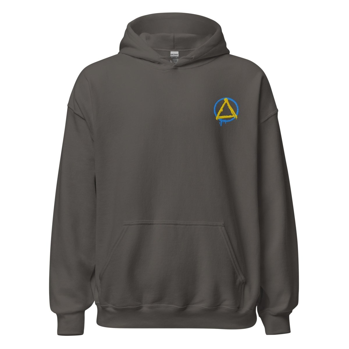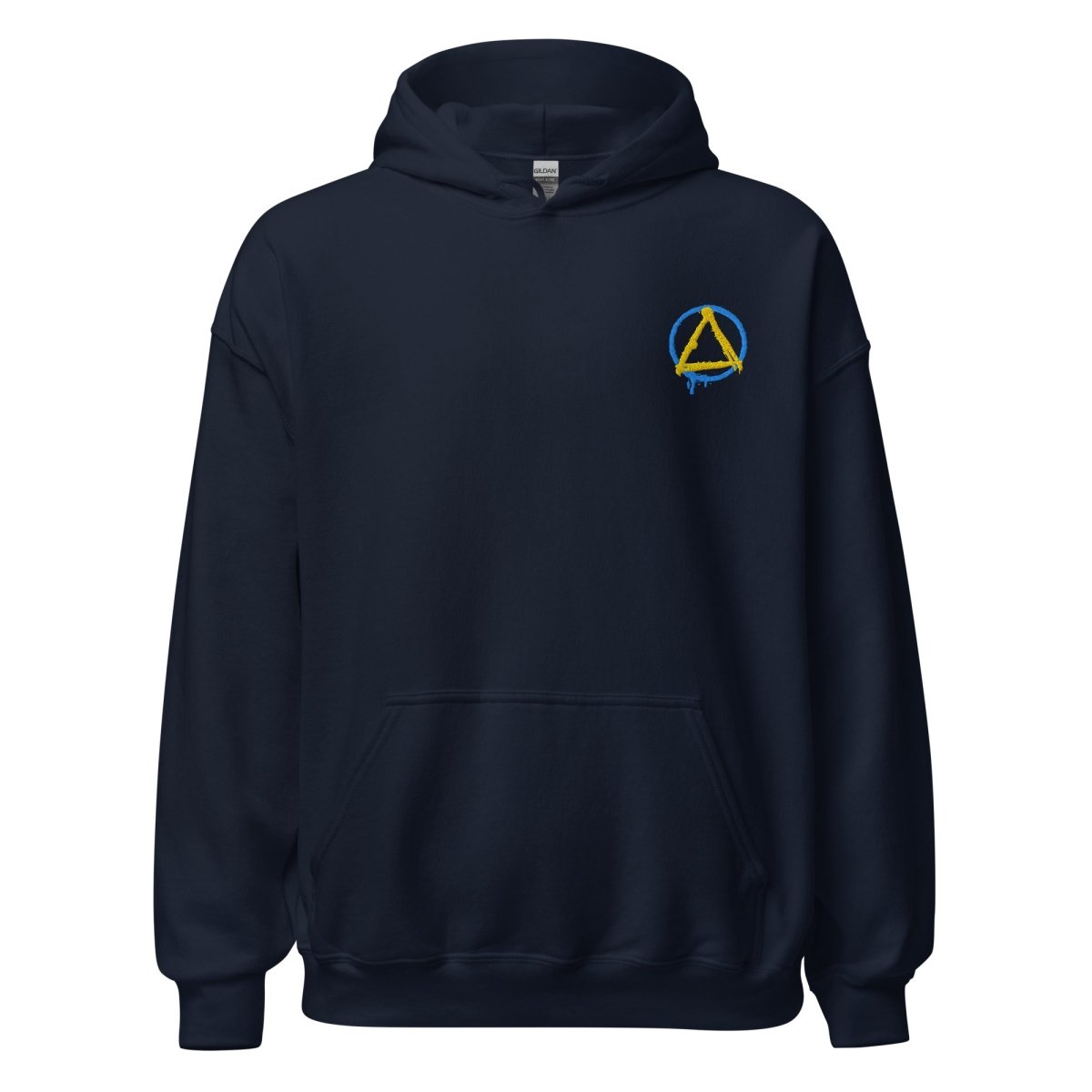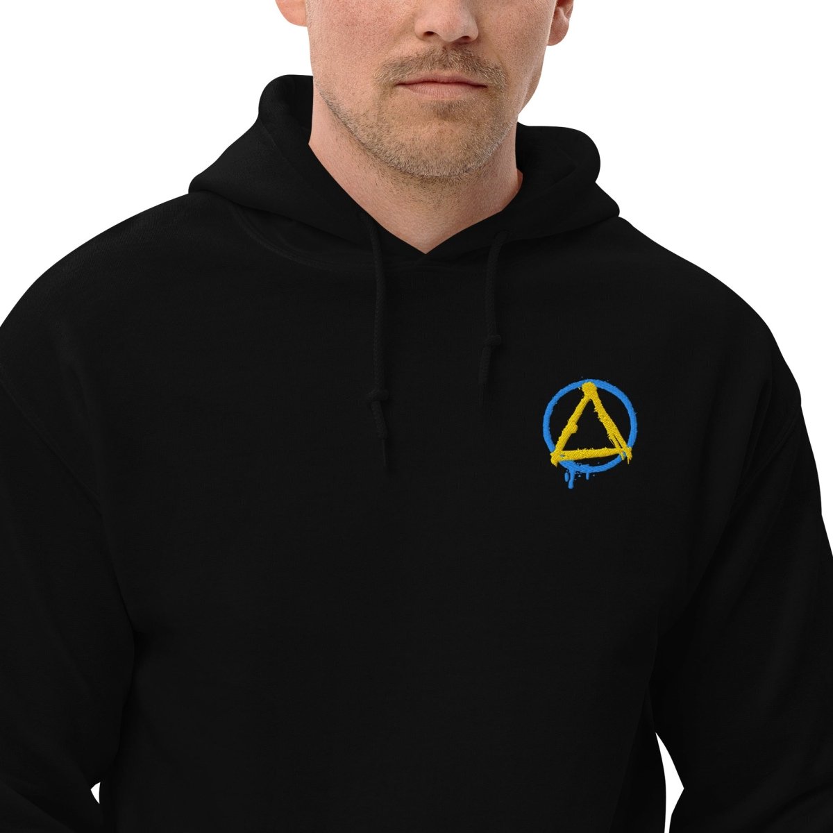 The Graffiti Sobriety Symbol Embroidered Hoodie transforms the iconic circle and triangle into raw street art. This isn't your standard sobriety symbol—the circle bleeds downward on the left side, paint dripping like fresh graffiti on a city wall, capturing the unfiltered energy of urban expression and the fluid, ongoing nature of recovery itself.