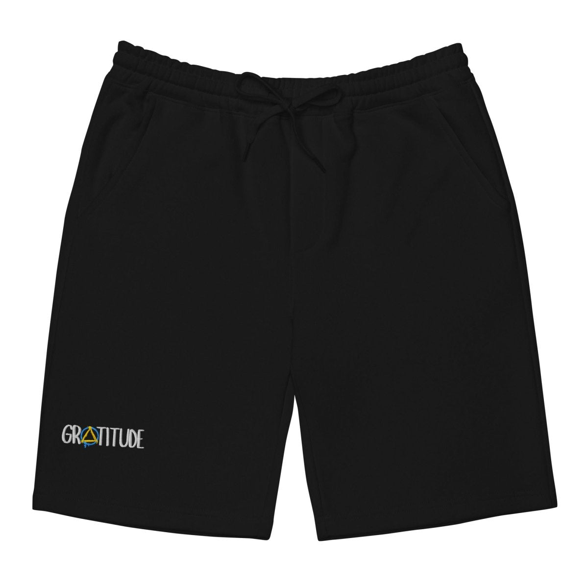 These aren't just fleece shorts—they're a statement piece for those who understand that recovery is built one day, one choice, one moment of gratitude at a time. The word "Gratitude" is custom-embroidered on the right leg, with the iconic graffiti sobriety symbol replacing the "A"—a subtle nod to the community that gets it.