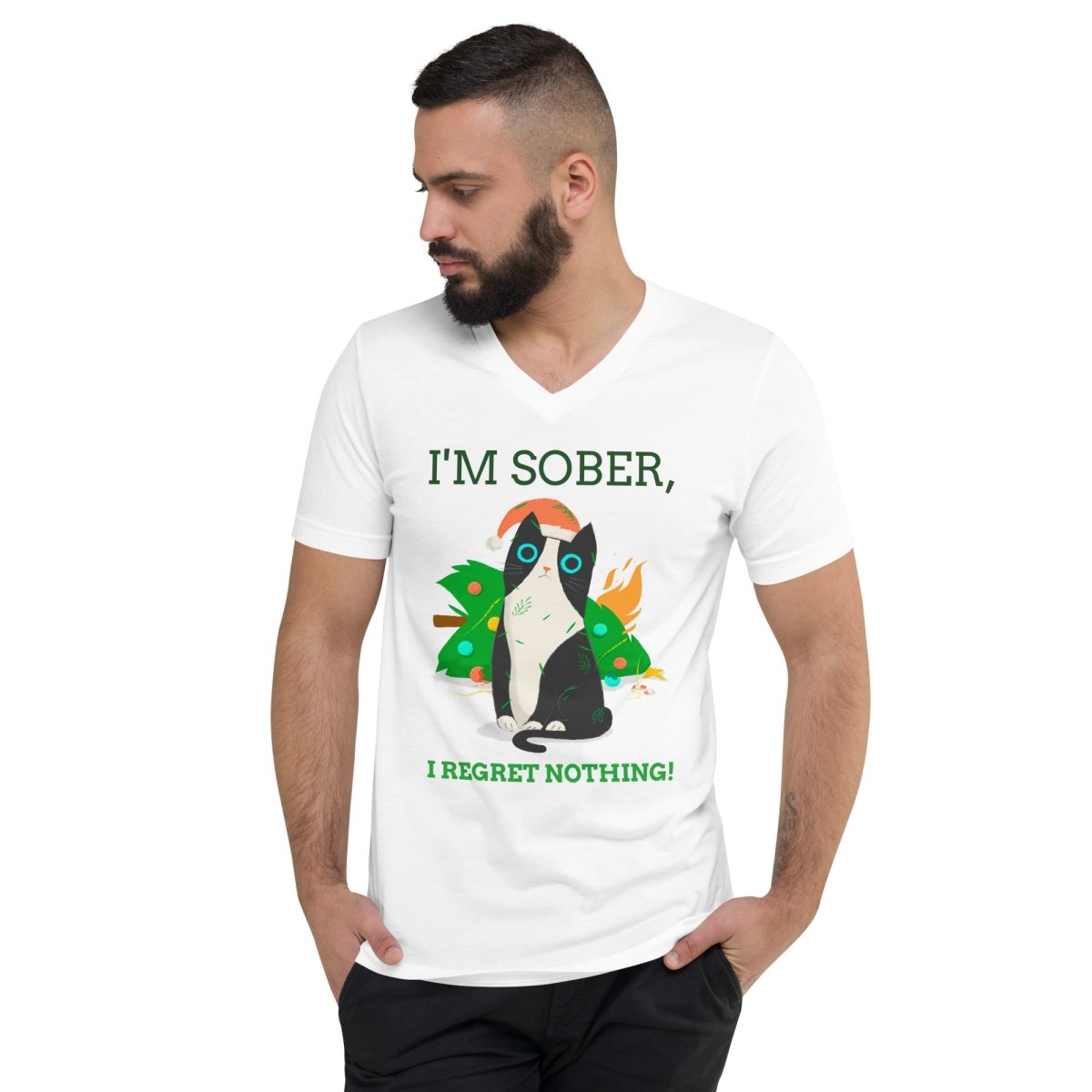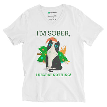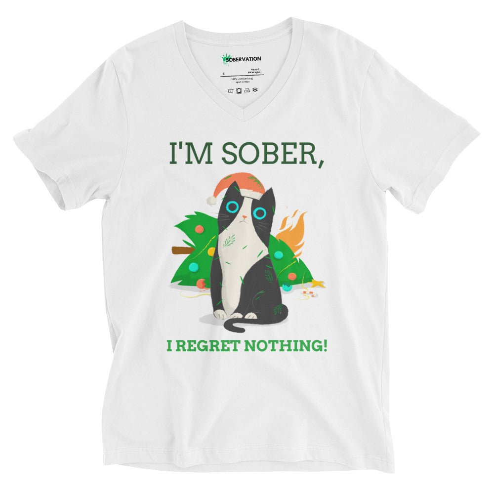 I’m Sober, I Regret Nothing V-Neck T-Shirt | Funny Sober Christmas Tee