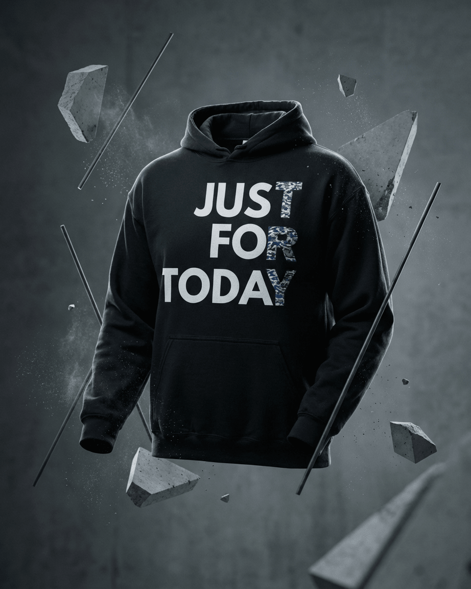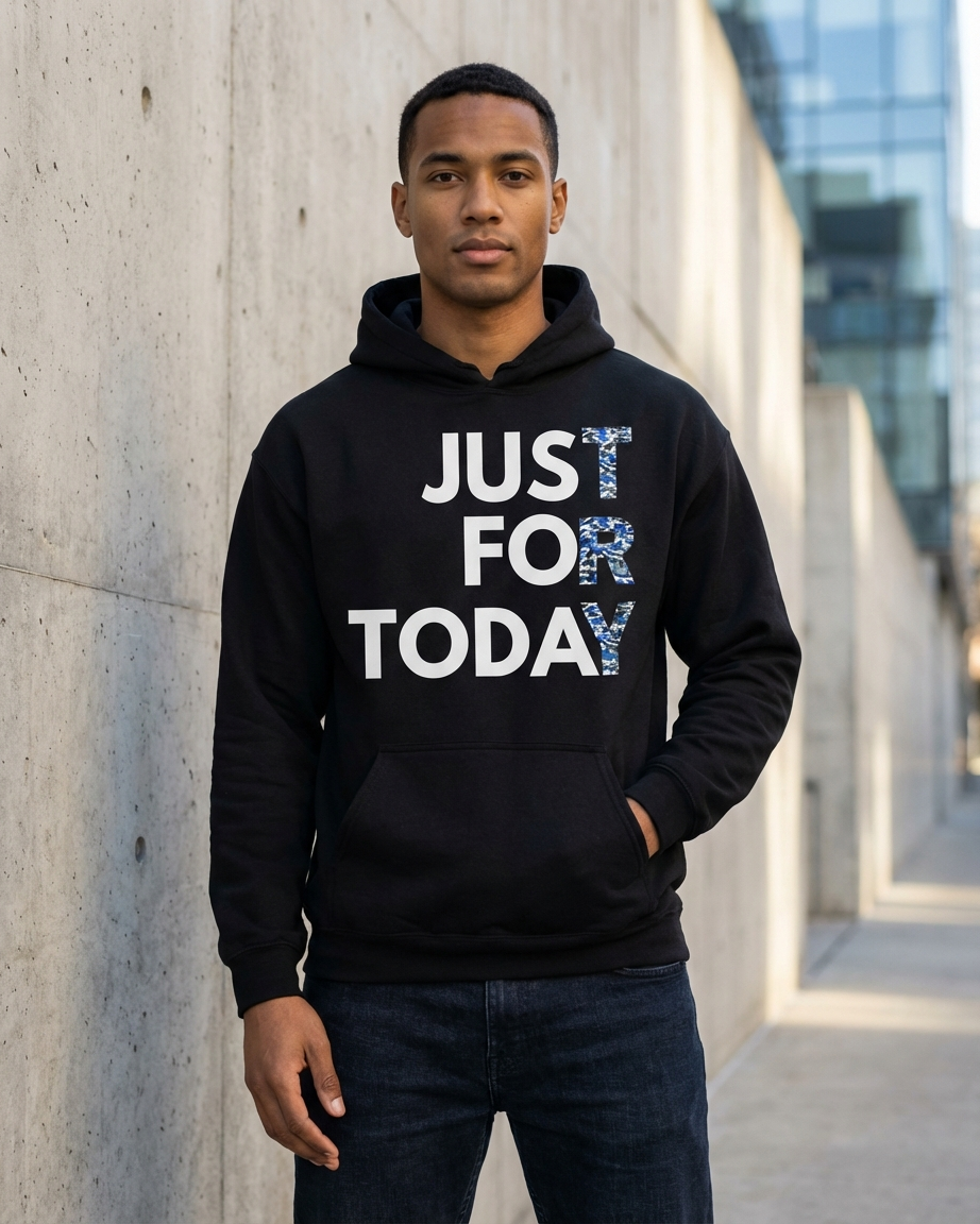 You're heading to a meeting, wearing your Just for Today blue camo hoodie. Someone notices the blue camo TRY and asks about it. You explain the meaning—just for today, keep trying. They nod with understanding. Your hoodie becomes more than apparel—it's a conversation starter, a reminder, a declaration that you're a warrior in recovery, and you're winning one day at a time.