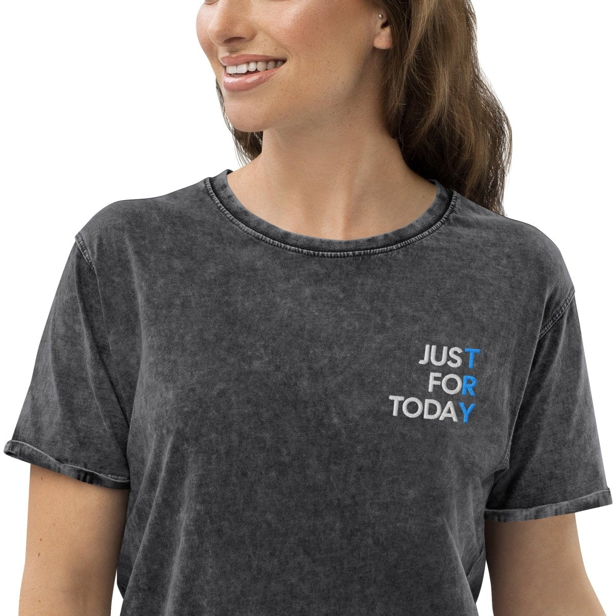 Just For Today Embroidered Denim T-Shirt | Recovery Mantra