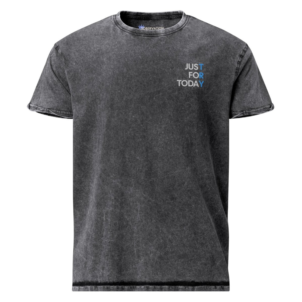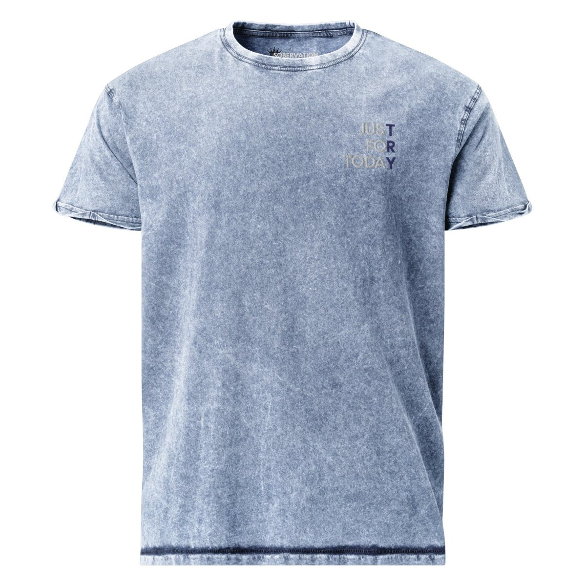 The Just For Today Embroidered Denim T-Shirt is a premium recovery essential for those who live by the most powerful mantra in sobriety. Crafted from heavyweight denim-washed cotton and finished with our signature "Just For Today" embroidery on the left chest—featuring the letters "TRY" in a contrasting color to emphasize the courage it takes to keep going—this tee is a daily reminder that recovery happens one moment at a time.