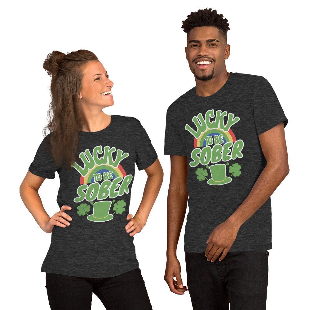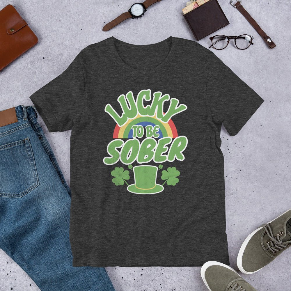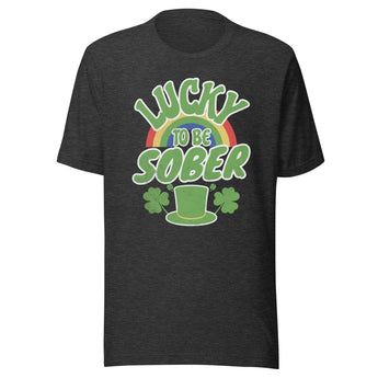 Lucky to be Sober St. Patrick's Day Tee - Rainbow Shamrock Shirt