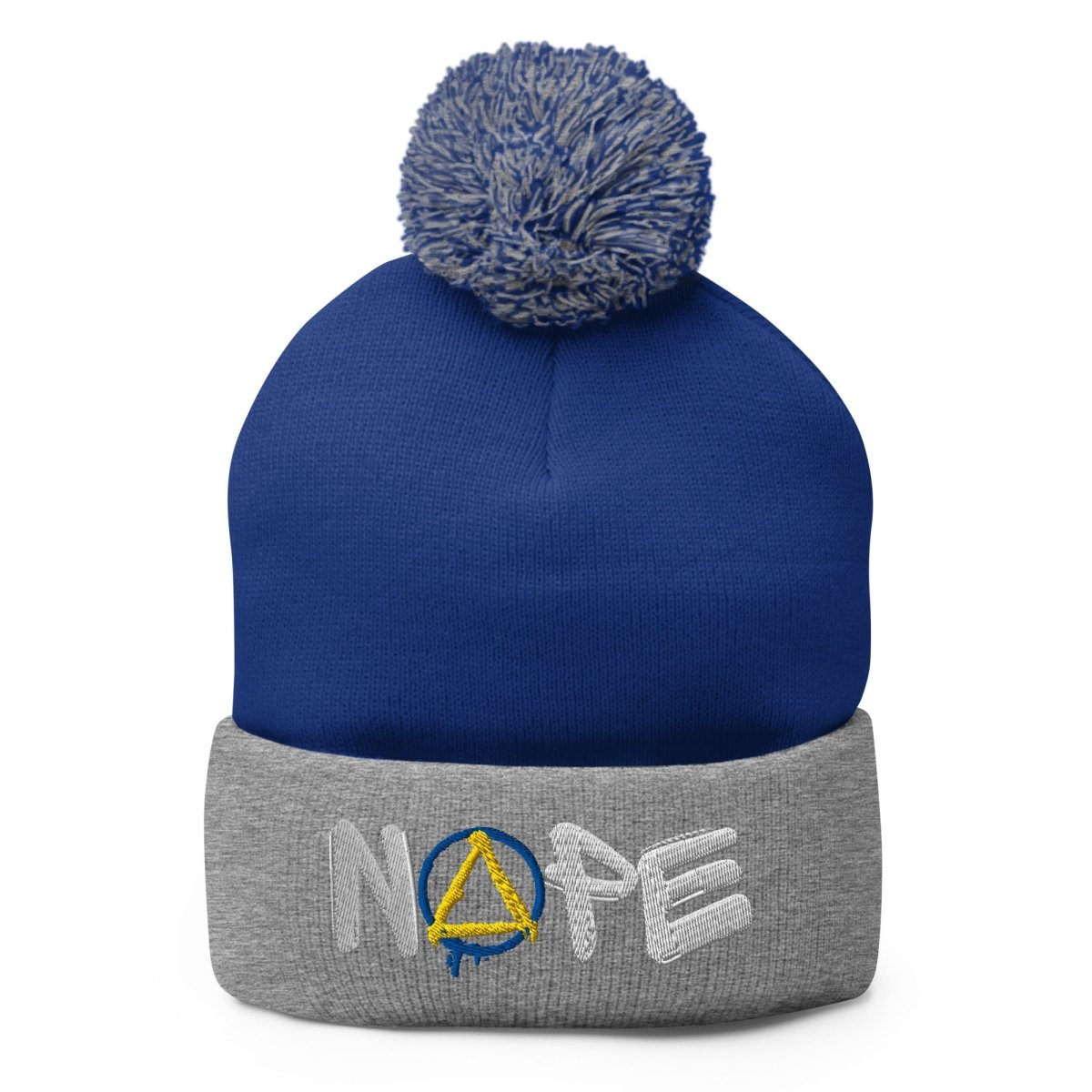 NOPE Pom-Pom Beanie – Playful Top, Serious Message