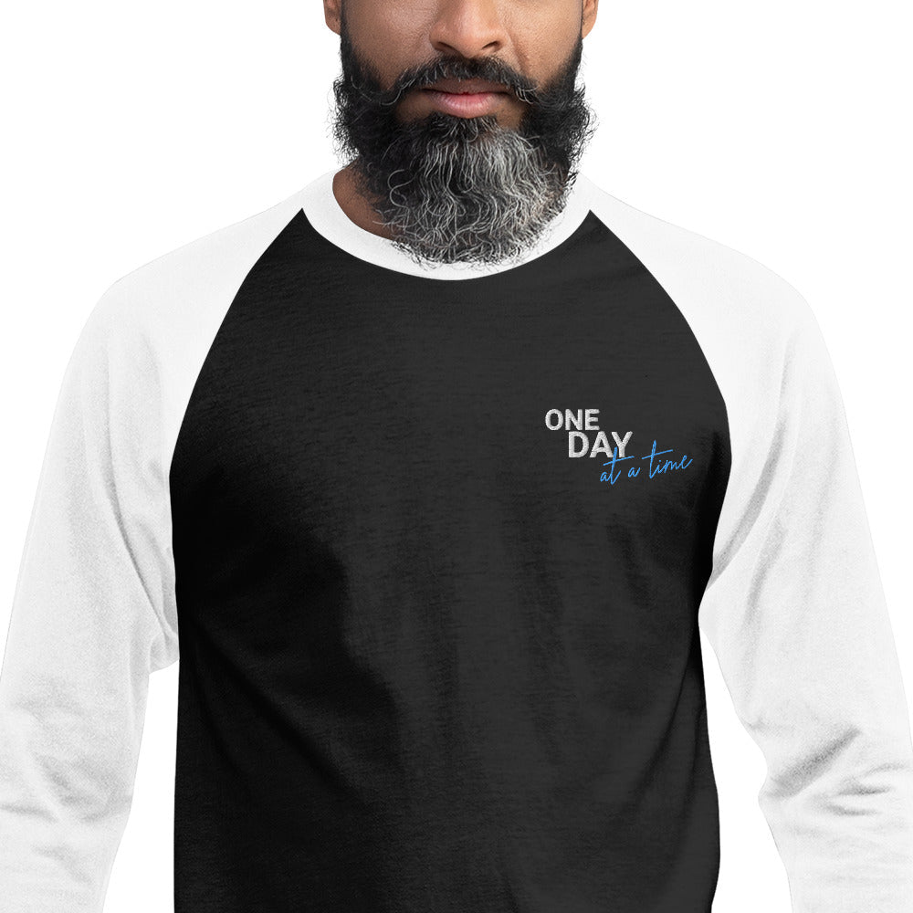 One Day at a Time Embroidered Unisex 3/4 Sleeve Raglan Shirt