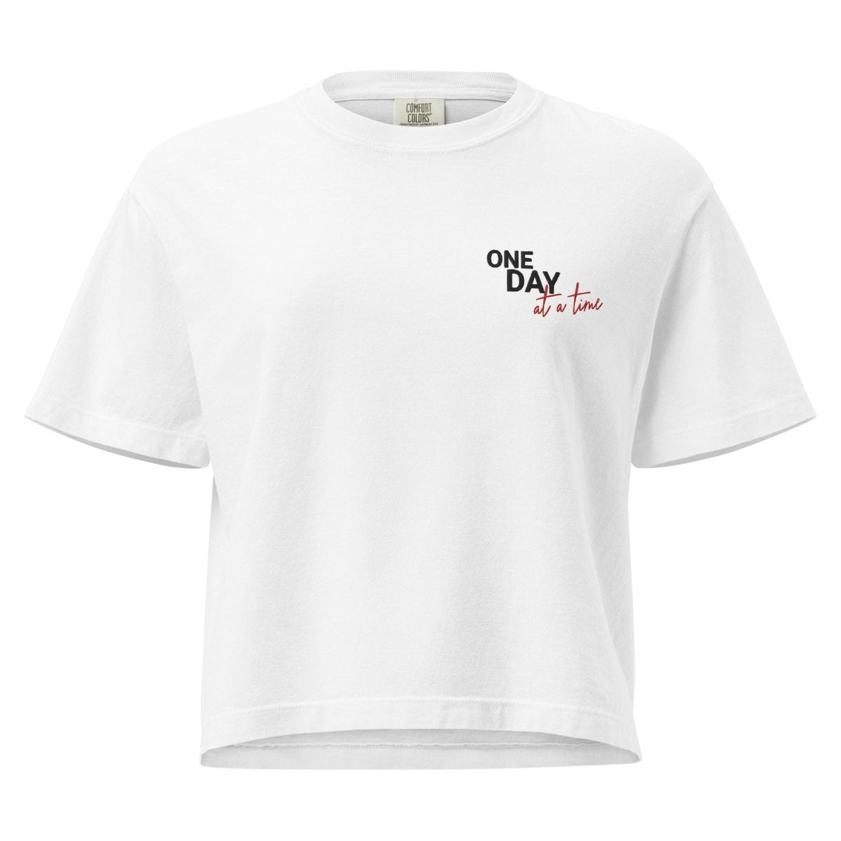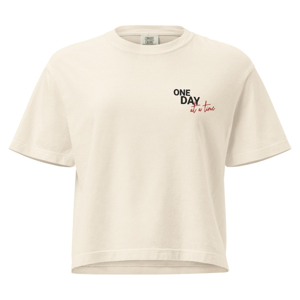 One Day at a Time Embroidered Women's Heavyweight Boxy Tee - Recovery Streetwear
