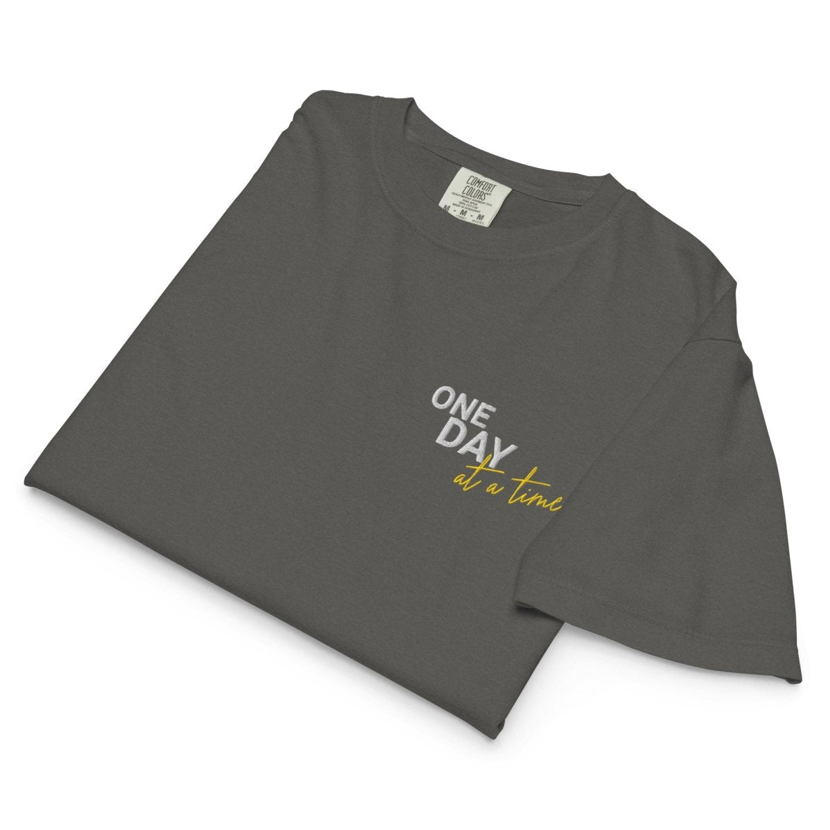 The One Day at a Time Embroidered Women's Heavyweight Boxy Tee celebrates the most essential principle in recovery—living in the present moment. Featuring the words "One Day at a Time" embroidered left chest, this design honors the truth that recovery isn't about conquering forever—it's about showing up today, right now, this moment.