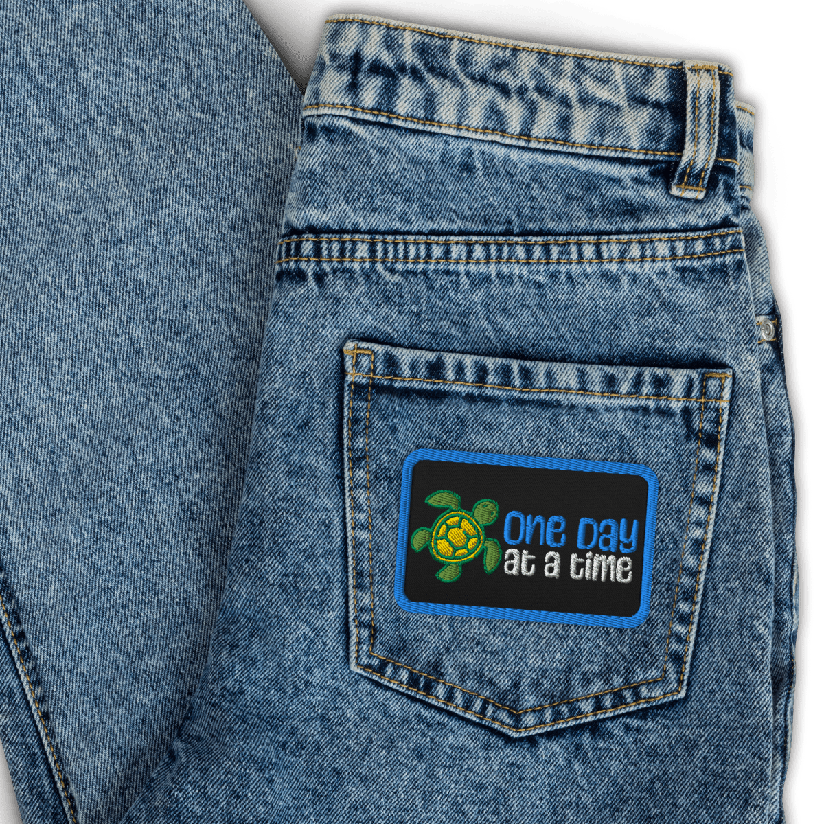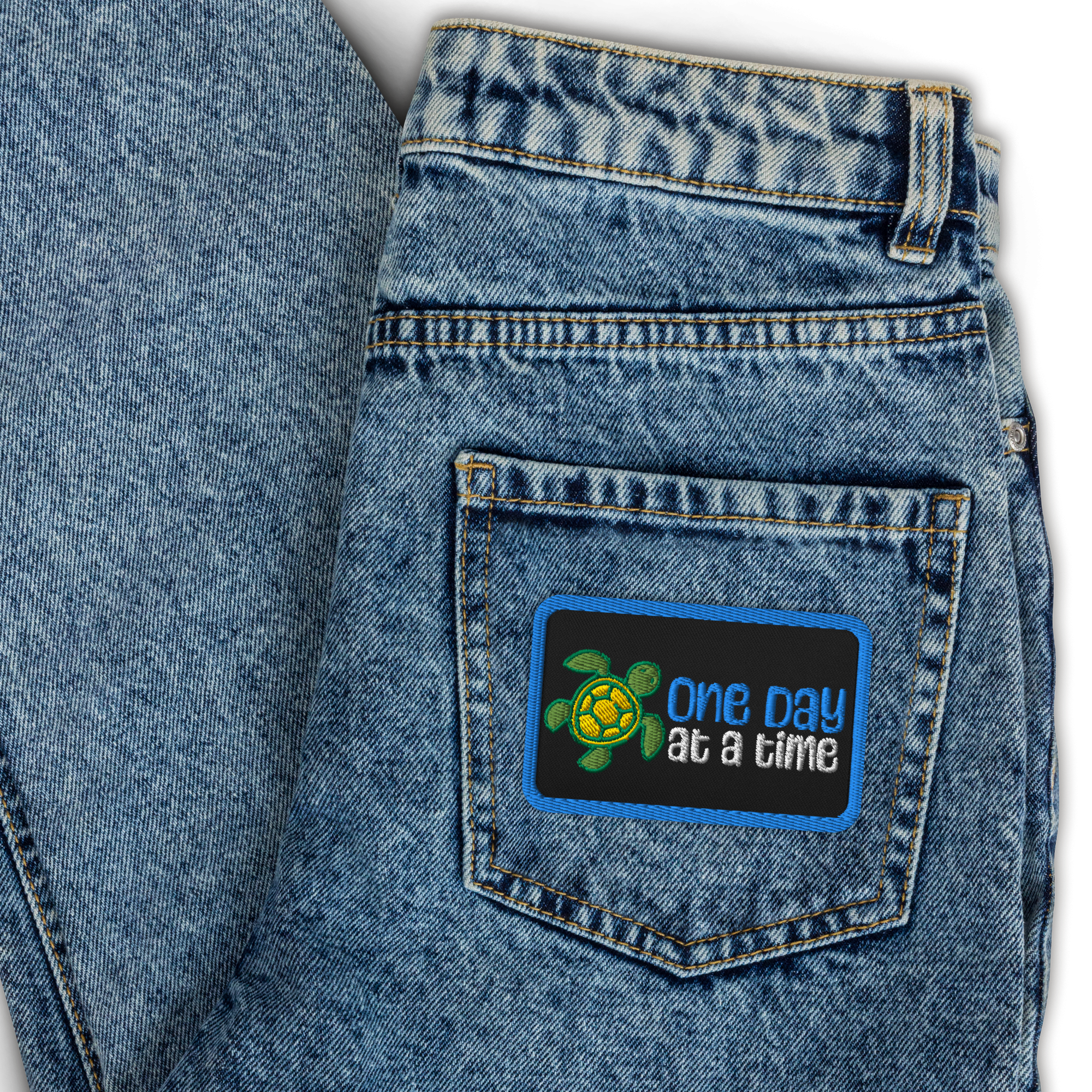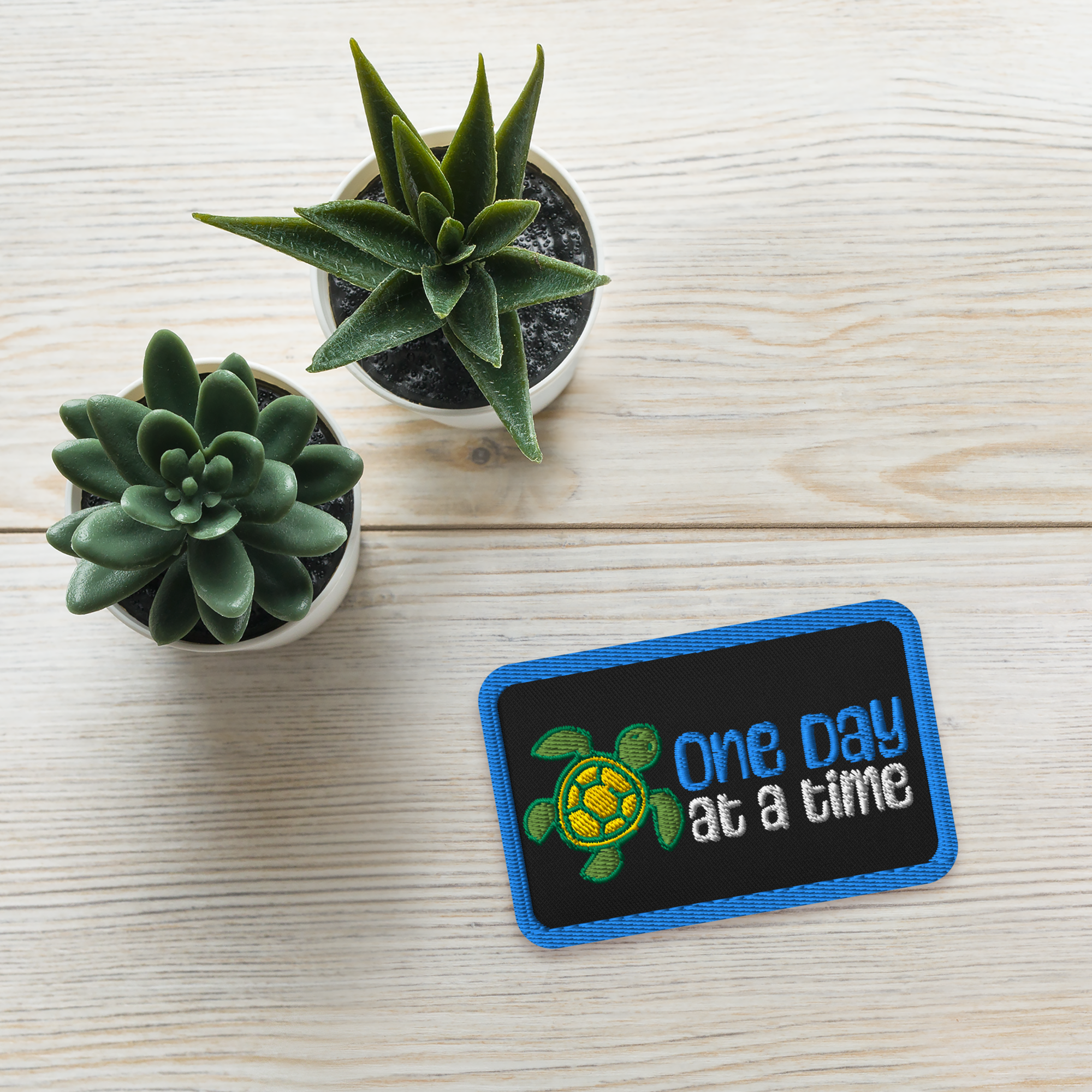 One Day at a Time Turtle Embroidered Patch - Iron-On Sew-On Pin