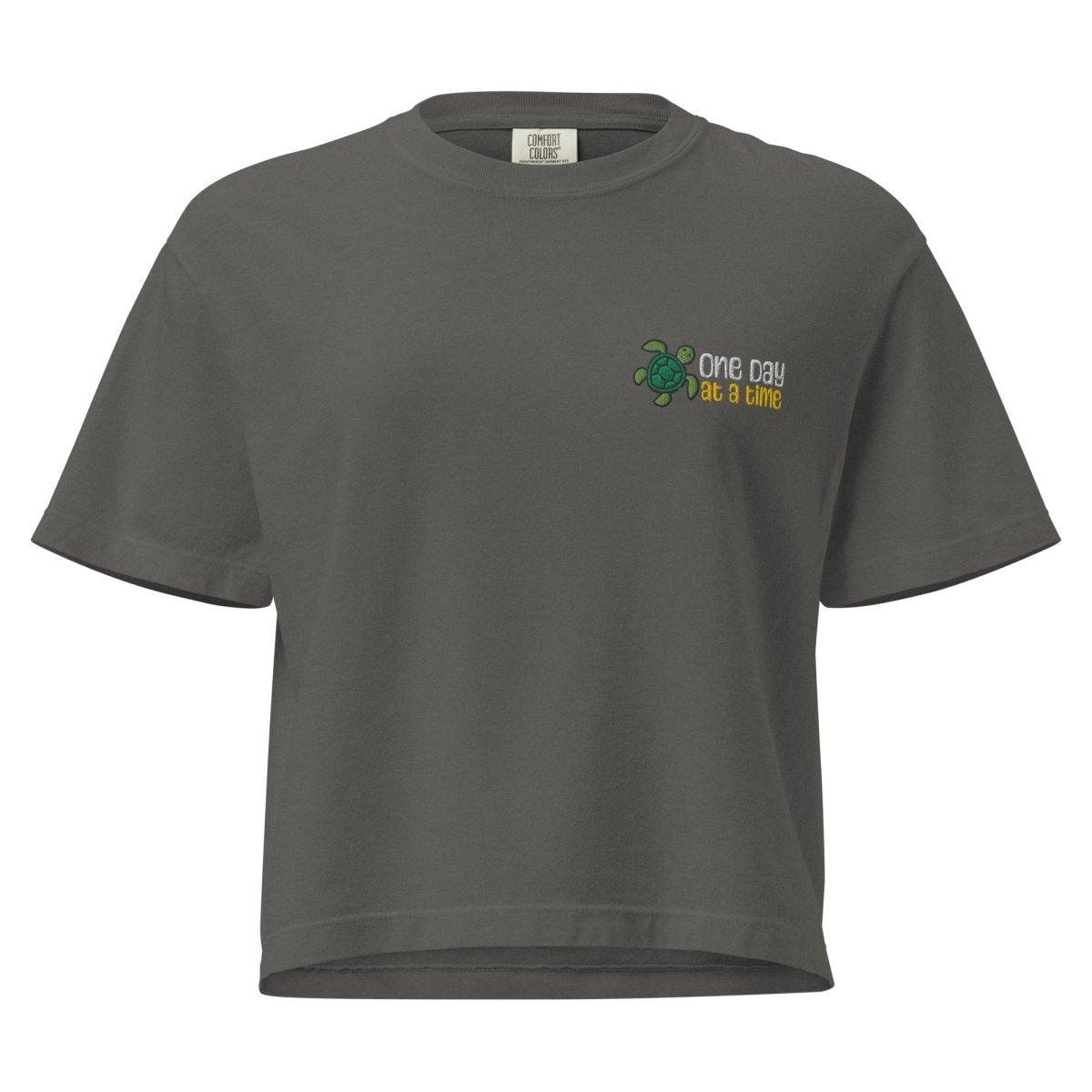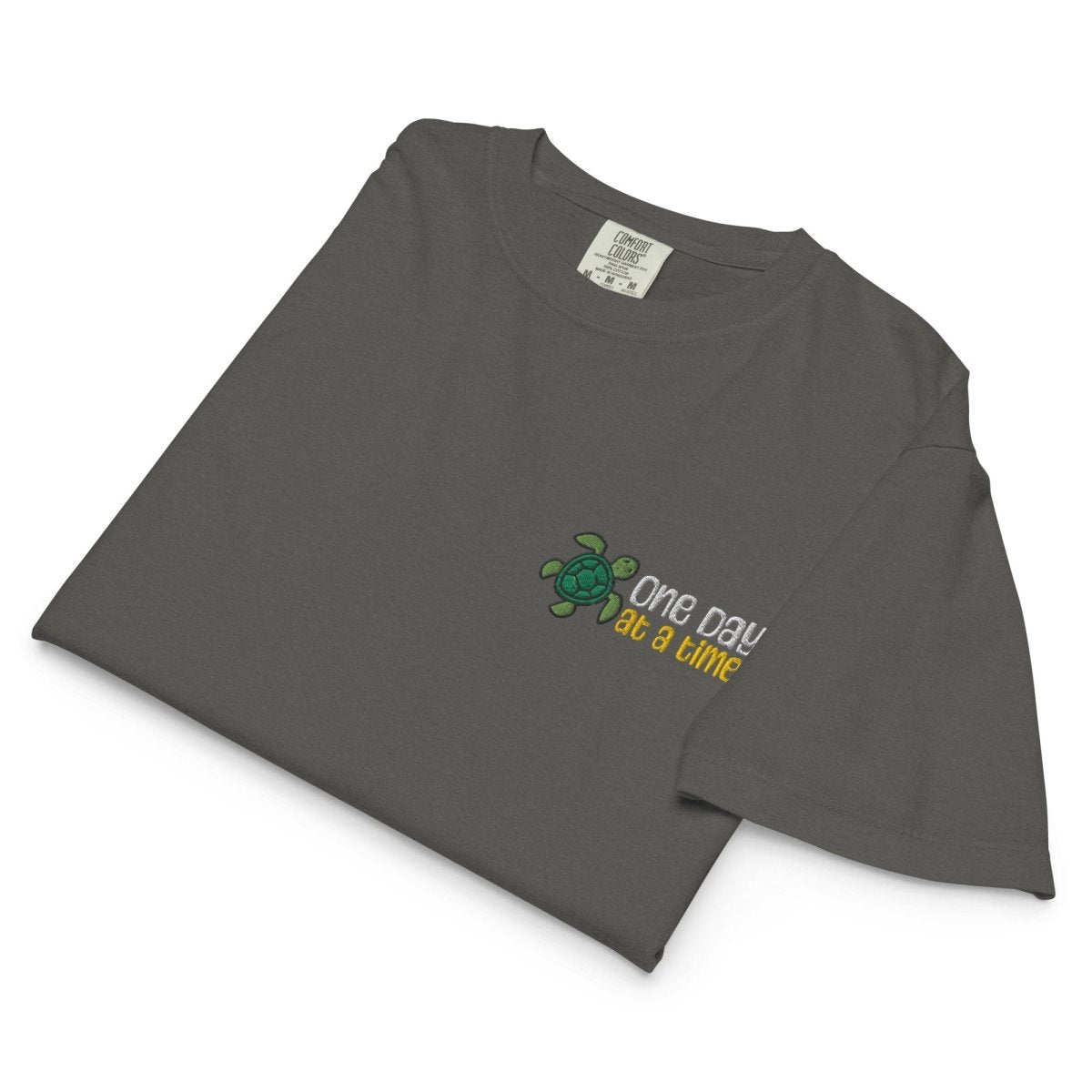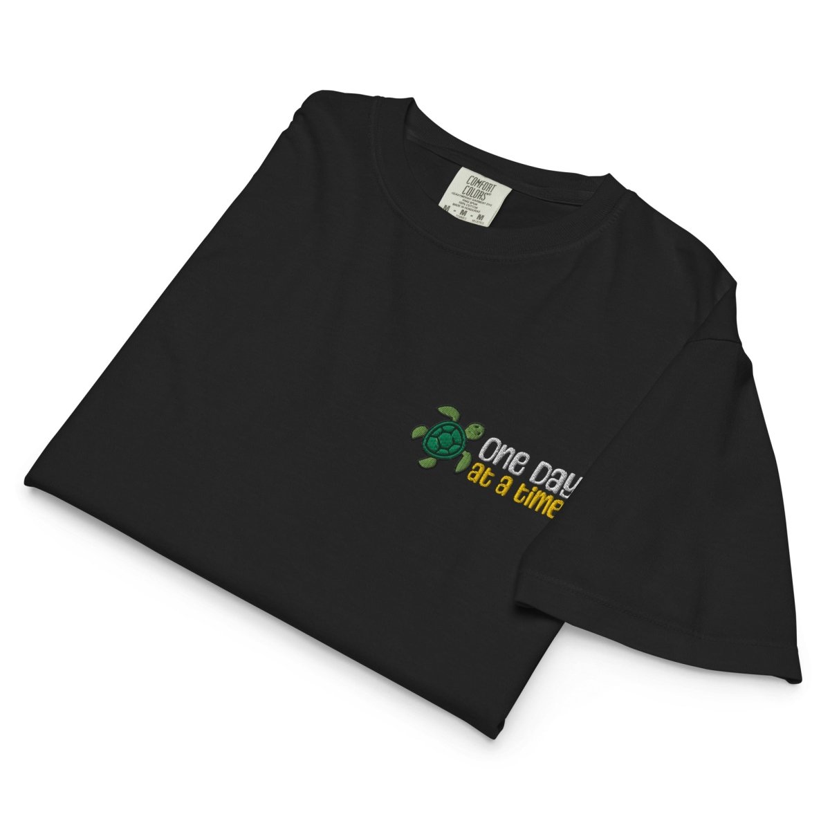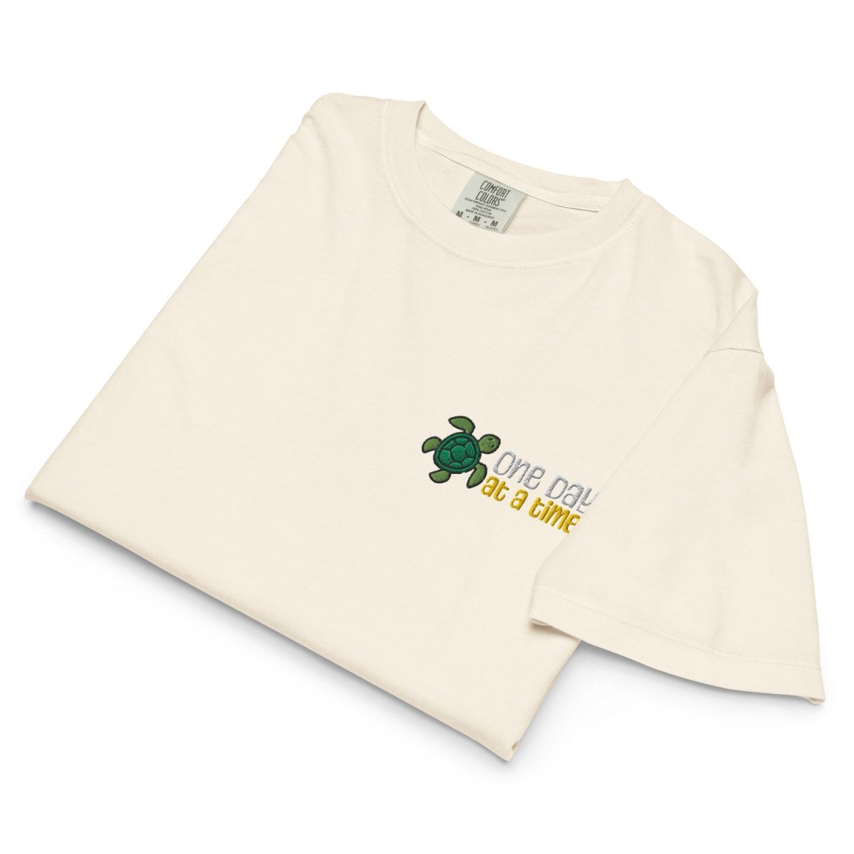 The One Day at a Time Turtle Embroidered Women's Heavyweight Boxy Tee is a premium recovery essential for those who understand that lasting change happens gradually. Crafted from heavyweight 100% ring-spun cotton on the Comfort Colors 3023CL platform and finished with our signature "One Day at a Time" turtle embroidery on the left chest, this boxy tee blends relaxed, oversized style with meaningful symbolism—a reminder that progress, like the turtle, is steady, deliberate, and unstoppable.