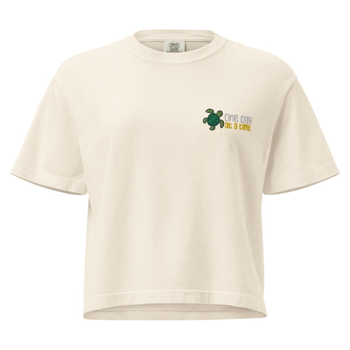 One Day at a Time Turtle Embroidered Women's Heavyweight Boxy Tee | Comfort Colors 3023CL