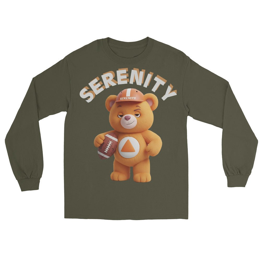 Score big in style with this bold Orange Serenity Cub Long Sleeve Tee. Featuring the sporty cub geared up with a helmet and football, this shirt is perfect for those tackling life with confidence and courage—one sober day at a time.
