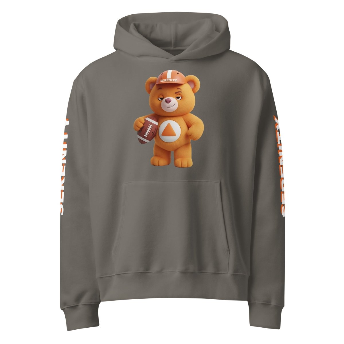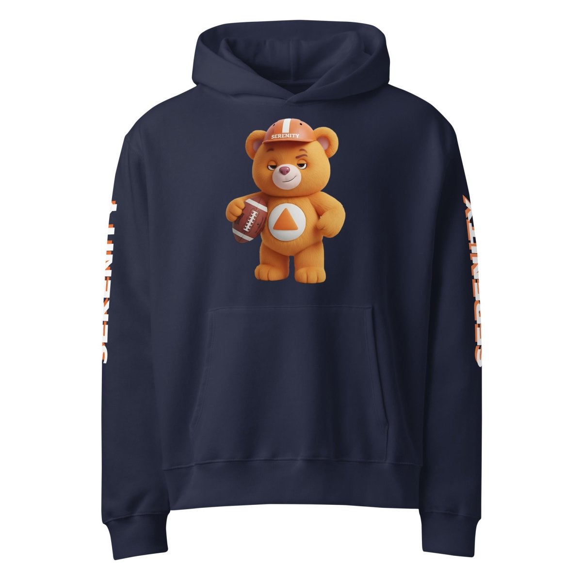Meet your new go-to layer—the Oversized Serenity Hoodie featuring Blaze, the bold and sporty Orange Serenity Cub. This heavyweight fleece hoodie brings together soft warmth, street-ready style, and a message that hits harder than any football: Recovery is strength.