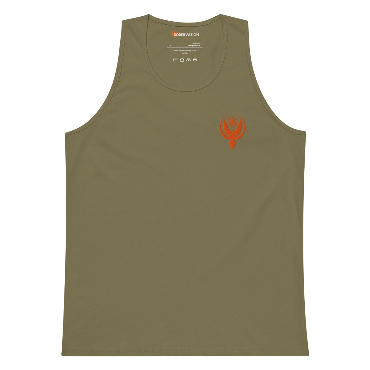 The Phoenix Reborn embroidered tank top is designed for the man who's risen from the ashes of his past. Featuring a phoenix with wings spread wide and the sobriety symbol at its center embroidered on the left chest, this premium tank celebrates transformation and renewal—a visual reminder that you're building something stronger from what tried to break you.