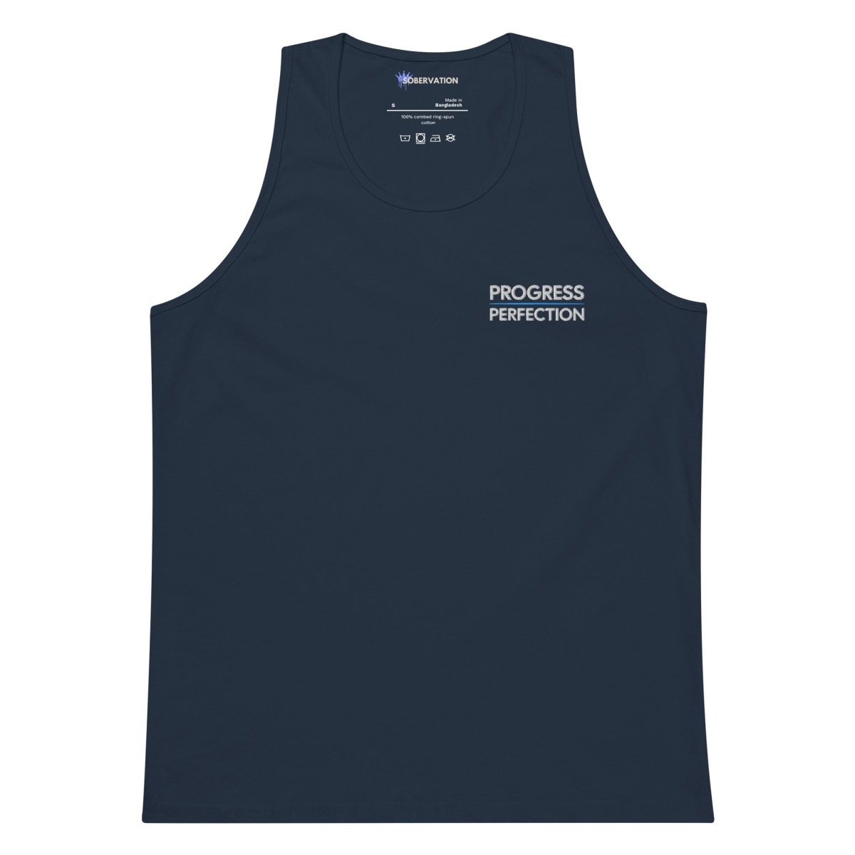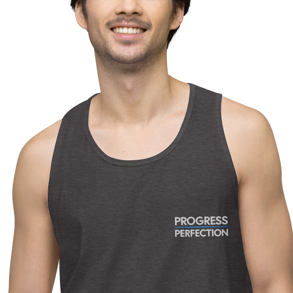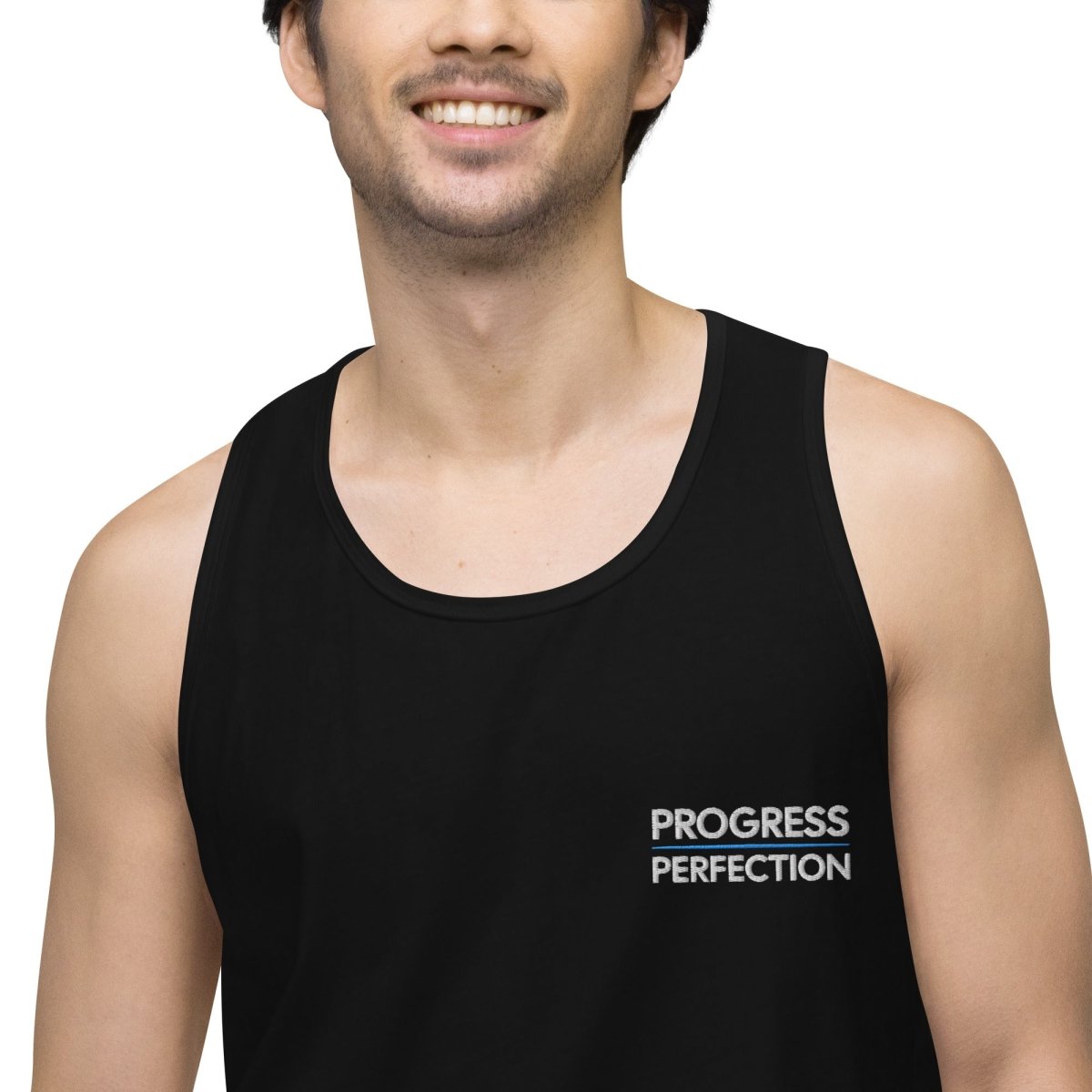 Progress Over Perfection Embroidered Men's Premium Tank Top
