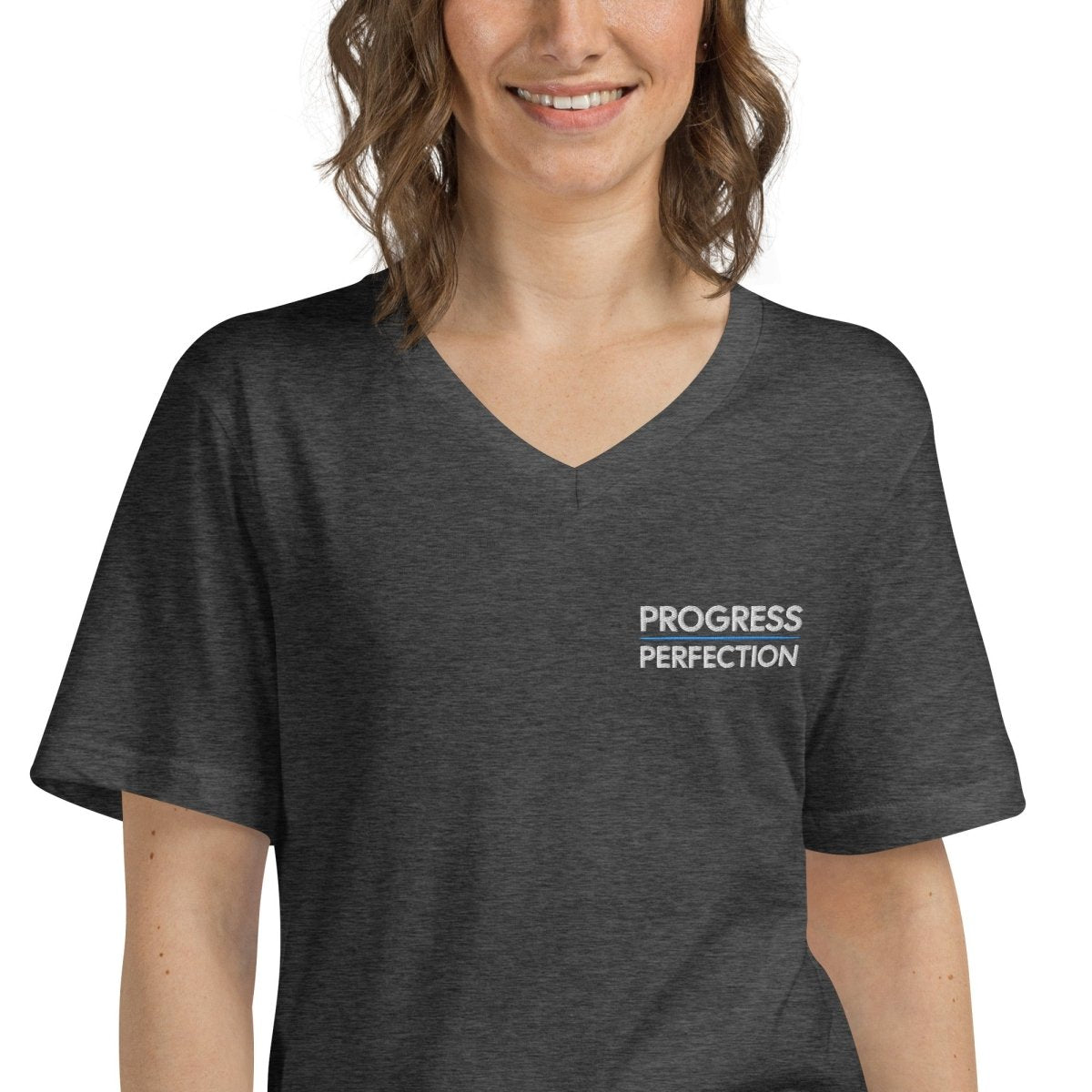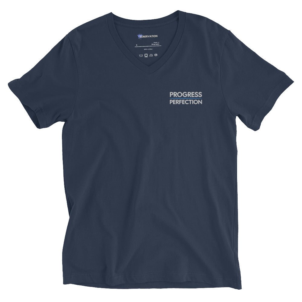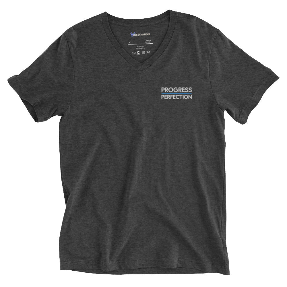 Progress Over Perfection Embroidered Unisex V-Neck Tee