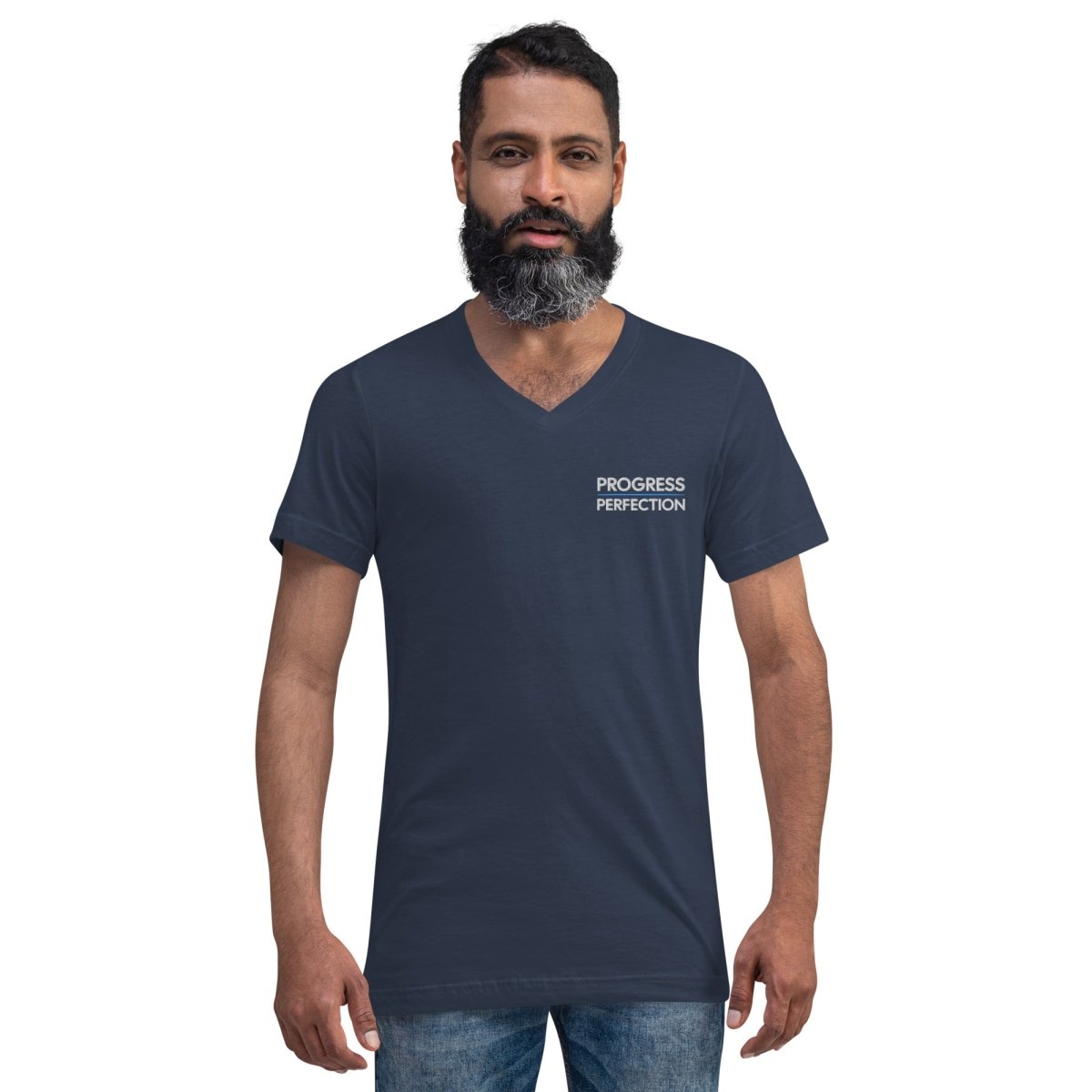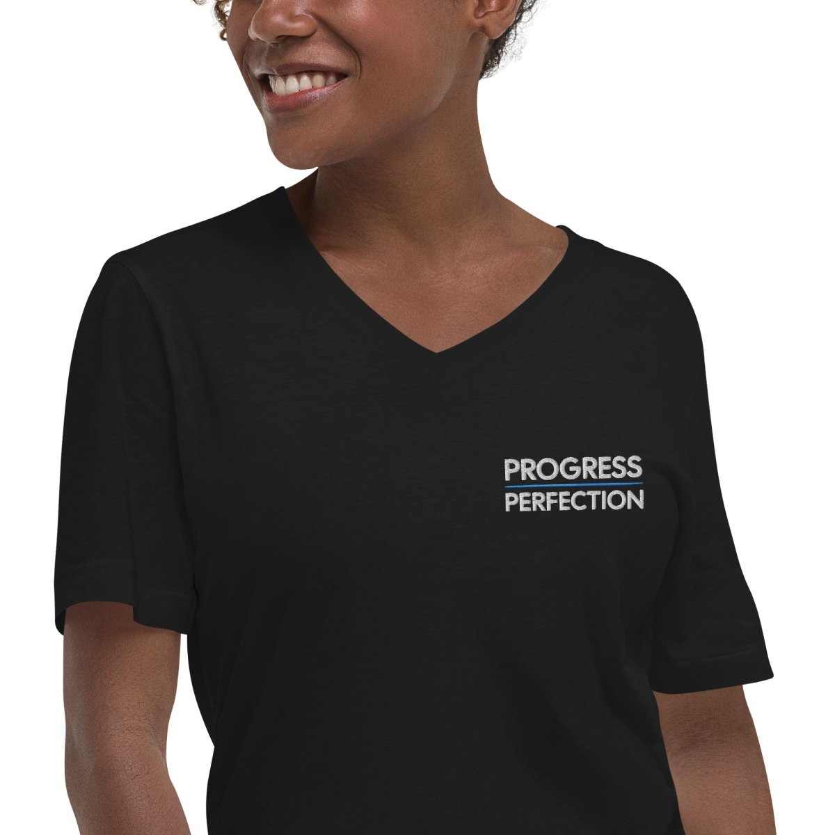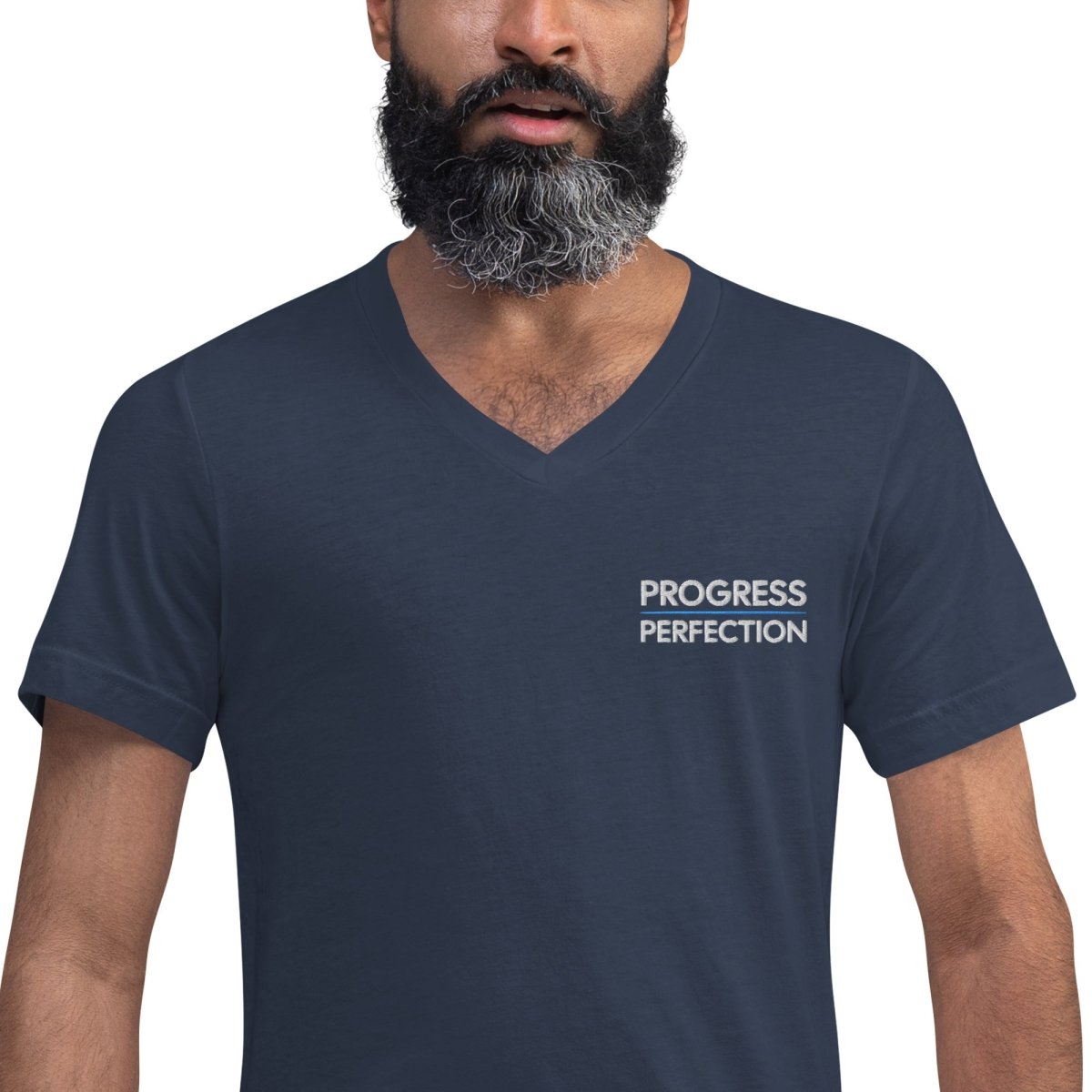 Progress Over Perfection Embroidered Unisex V-Neck Tee
