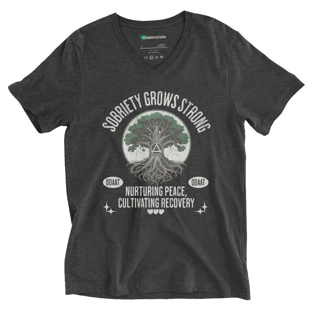 Recovery Roots V-Neck Tee – Timeless Comfort, Grounded in Strength
