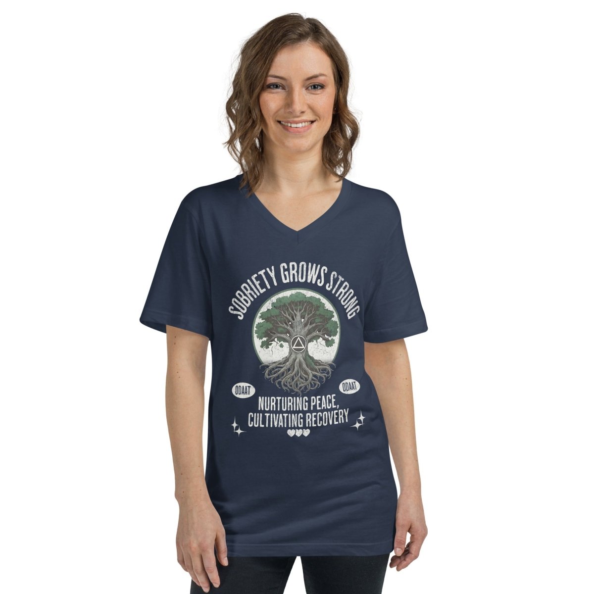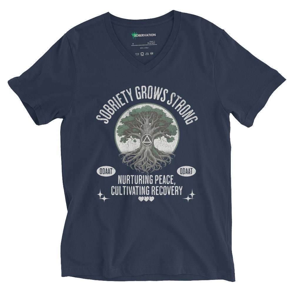 Recovery Roots V - Neck Tee – Timeless Comfort, Grounded in Strength - Navy V - Neck Tee - Sobervation