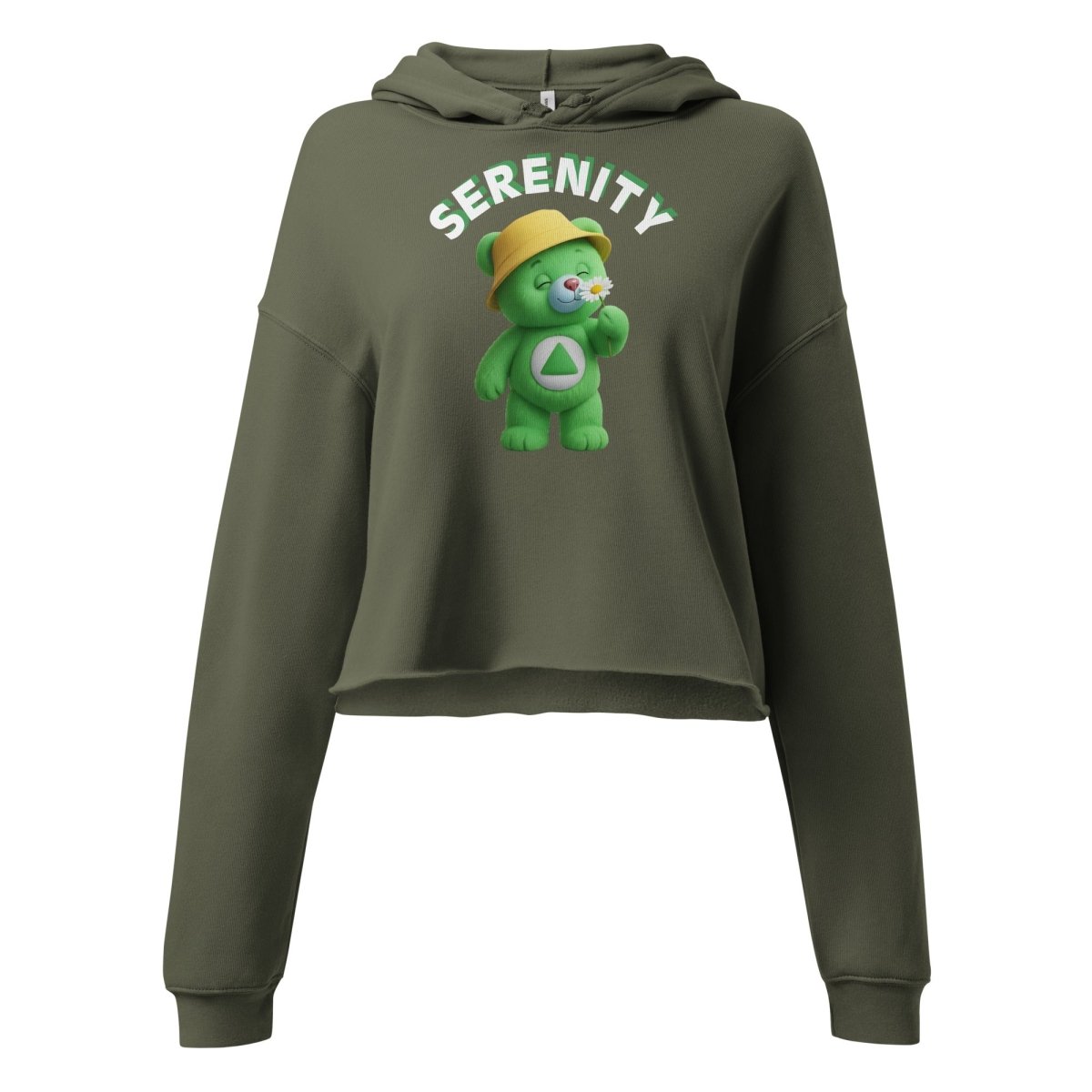 Peace, presence, and a cozy dose of calm. This crop hoodie features Sage the Serenity Cub pausing to enjoy the fragrance of a flower — a beautiful symbol of staying grounded in gratitude. Wrap yourself in serenity and softness while carrying a mindful message of recovery wherever you go.