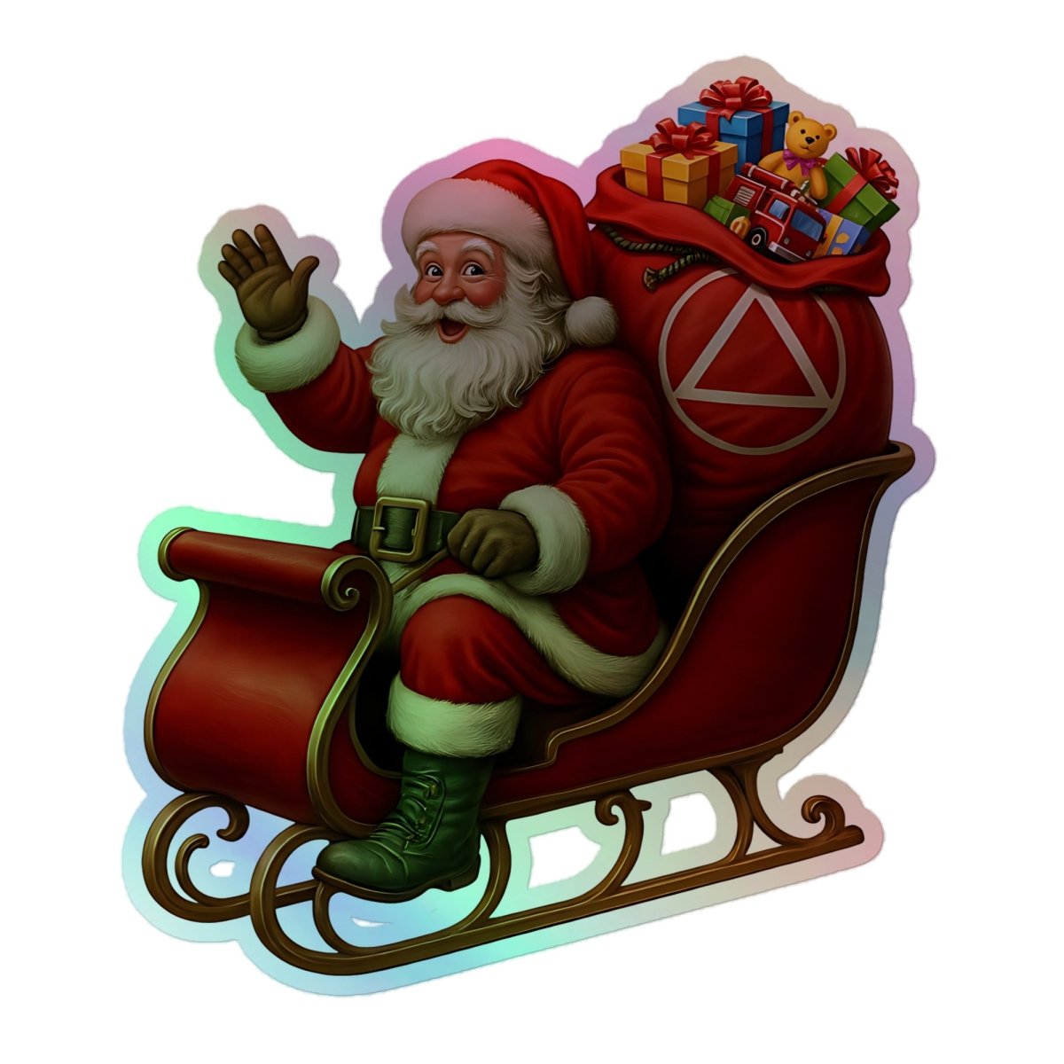 Santa’s Sleigh Sobriety Sticker – Holographic Vinyl