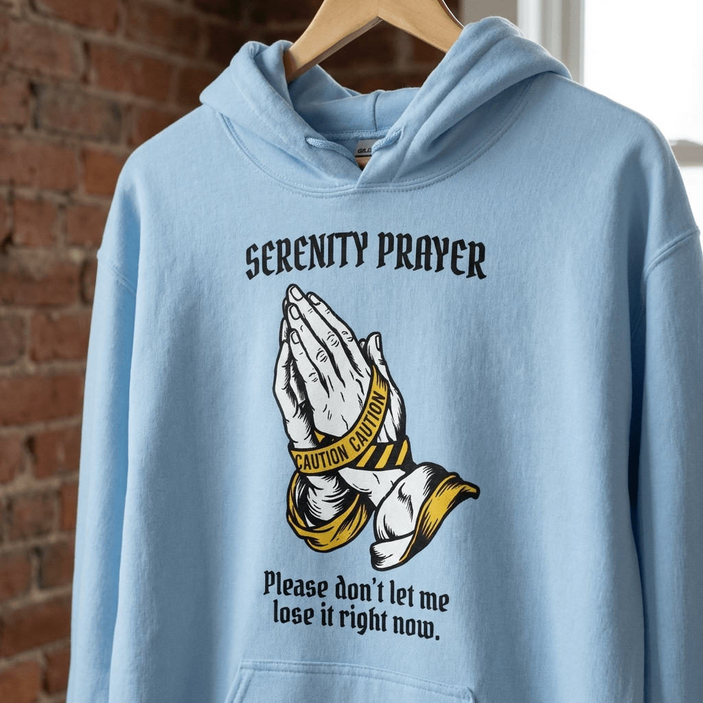 The Serenity Prayer is the most recognized text in recovery — the three things every person in the program asks for every single day. Serenity to accept what can’t be changed. Courage to change what can. Wisdom to know the difference. The Sober Translations version renders that prayer in the visual language of Sobervation: bold, wearable, and built for the ones who live it.