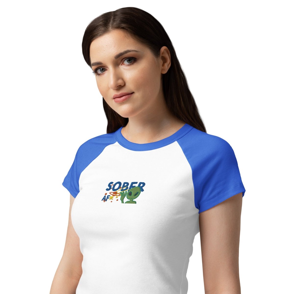 Sober AF Alien | Embroidered Women's Raglan Baby Tee