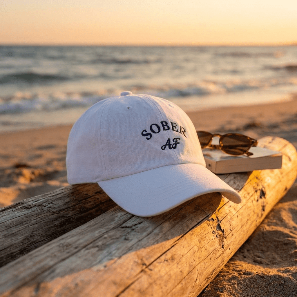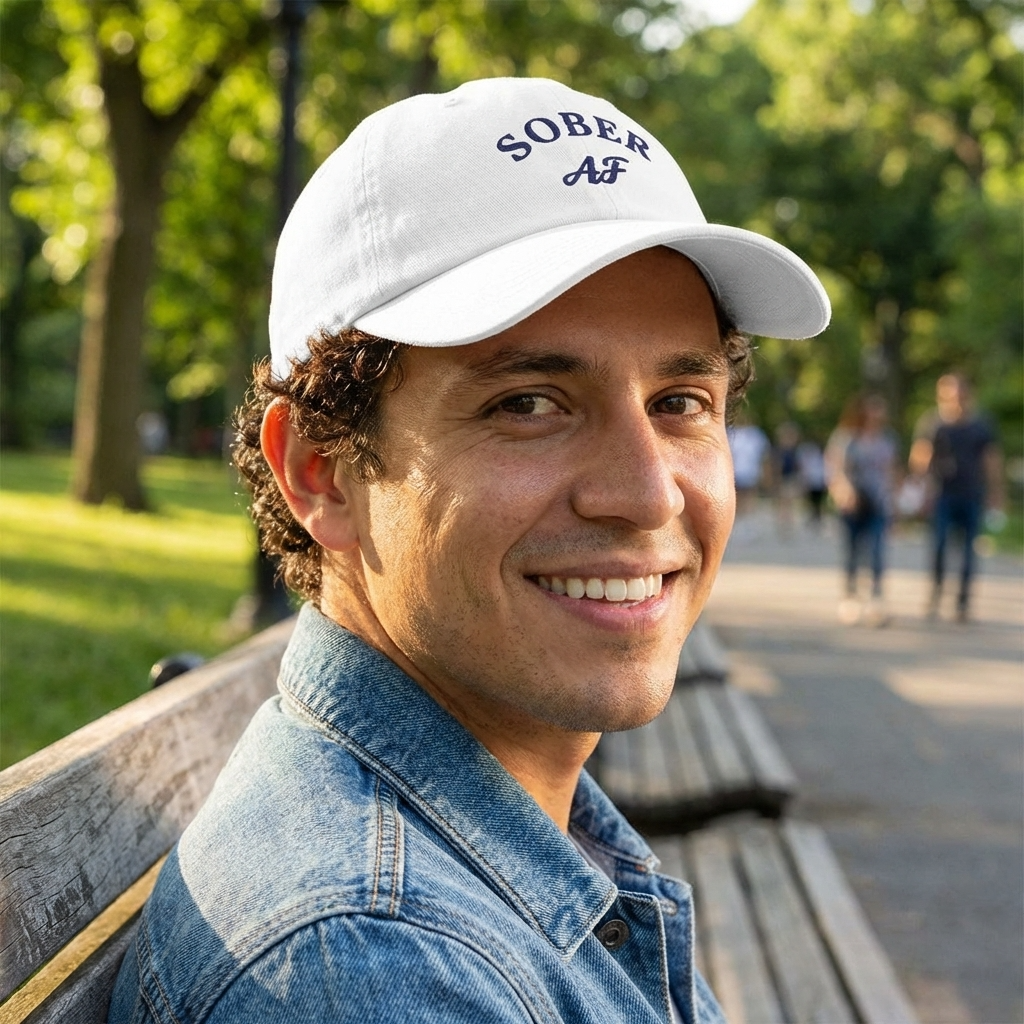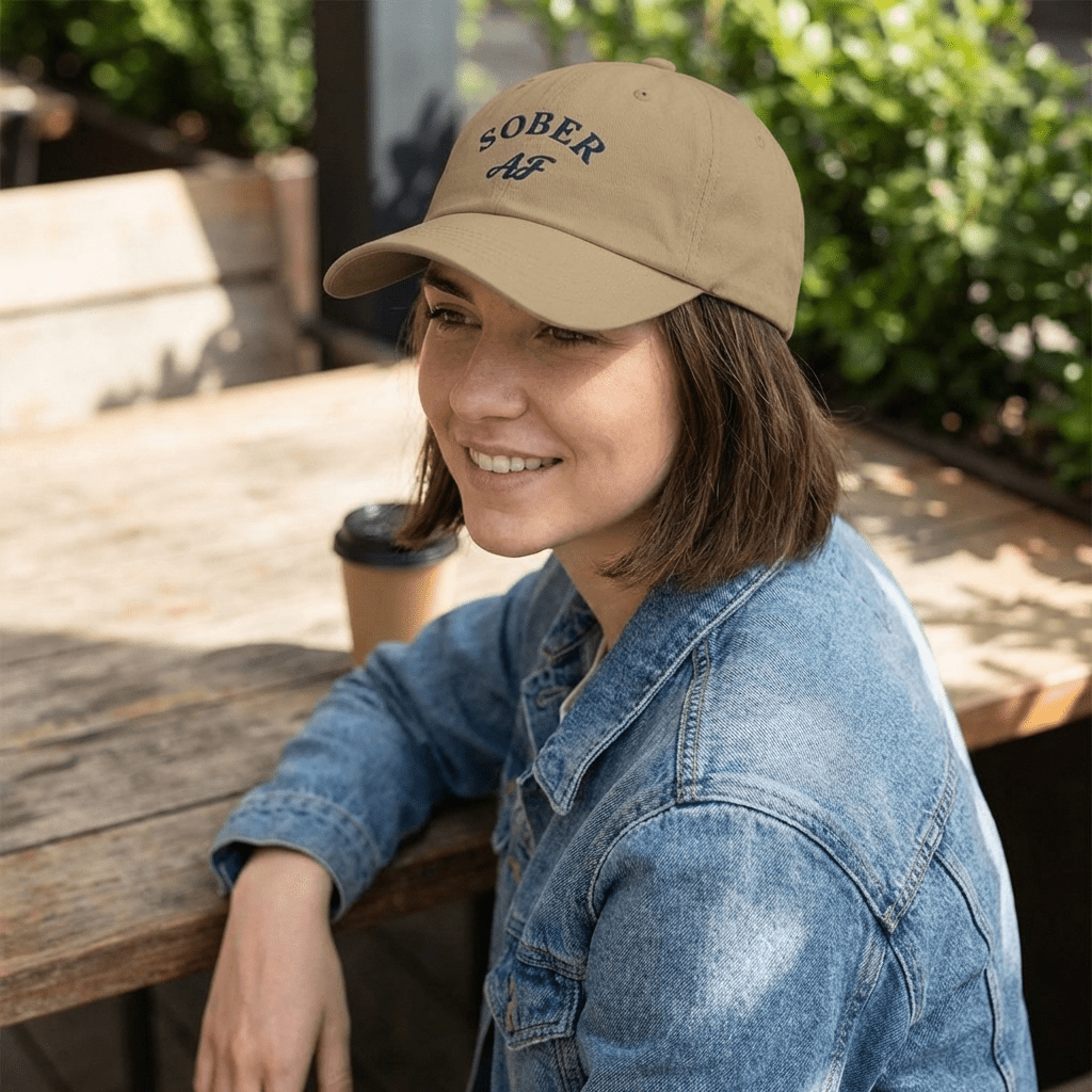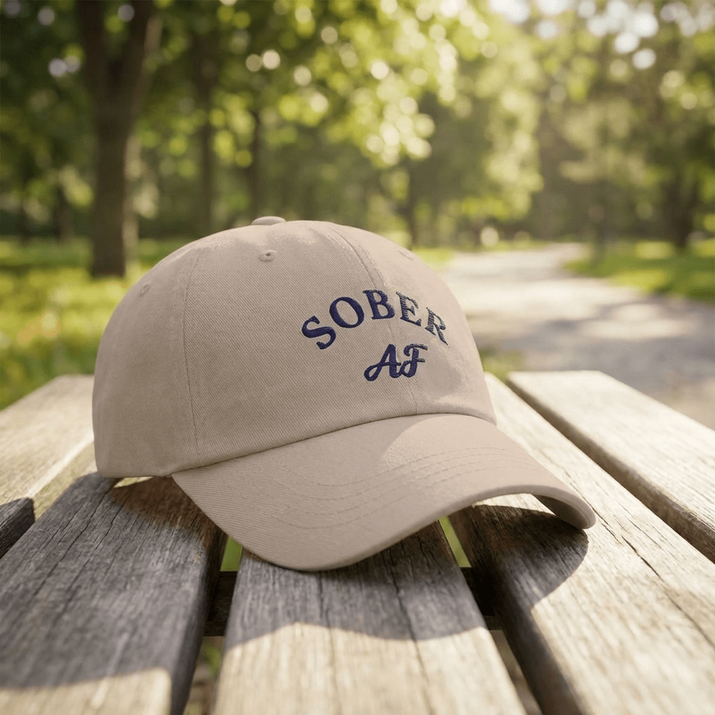 The Sober AF Embroidered Dad Hat (Light Colors) is a bold, unapologetic statement piece for those who wear their sobriety with pride and confidence. Featuring striking embroidered lettering on premium light-colored cotton twill, this unstructured dad hat combines comfort, style, and meaningful symbolism for your recovery journey.