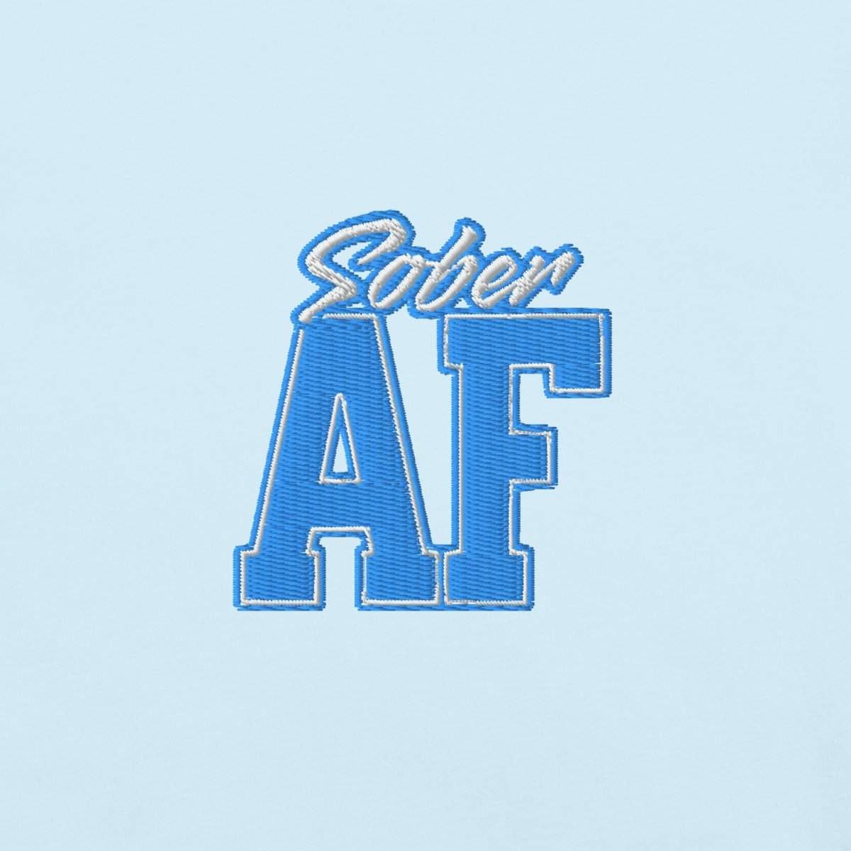 - Collegiate-style SOBER AF embroidery on left chest—no fading, no cracking