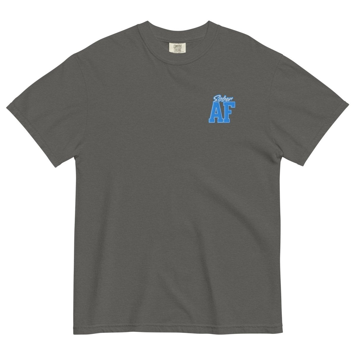 This unisex heavyweight t-shirt features our iconic SOBER AF design embroidered in classic varsity-style lettering on the left chest. Built with Comfort Colors' signature garment-dyed fabric, it delivers that perfectly broken-in feel from day one, with colors that only get better with age.
