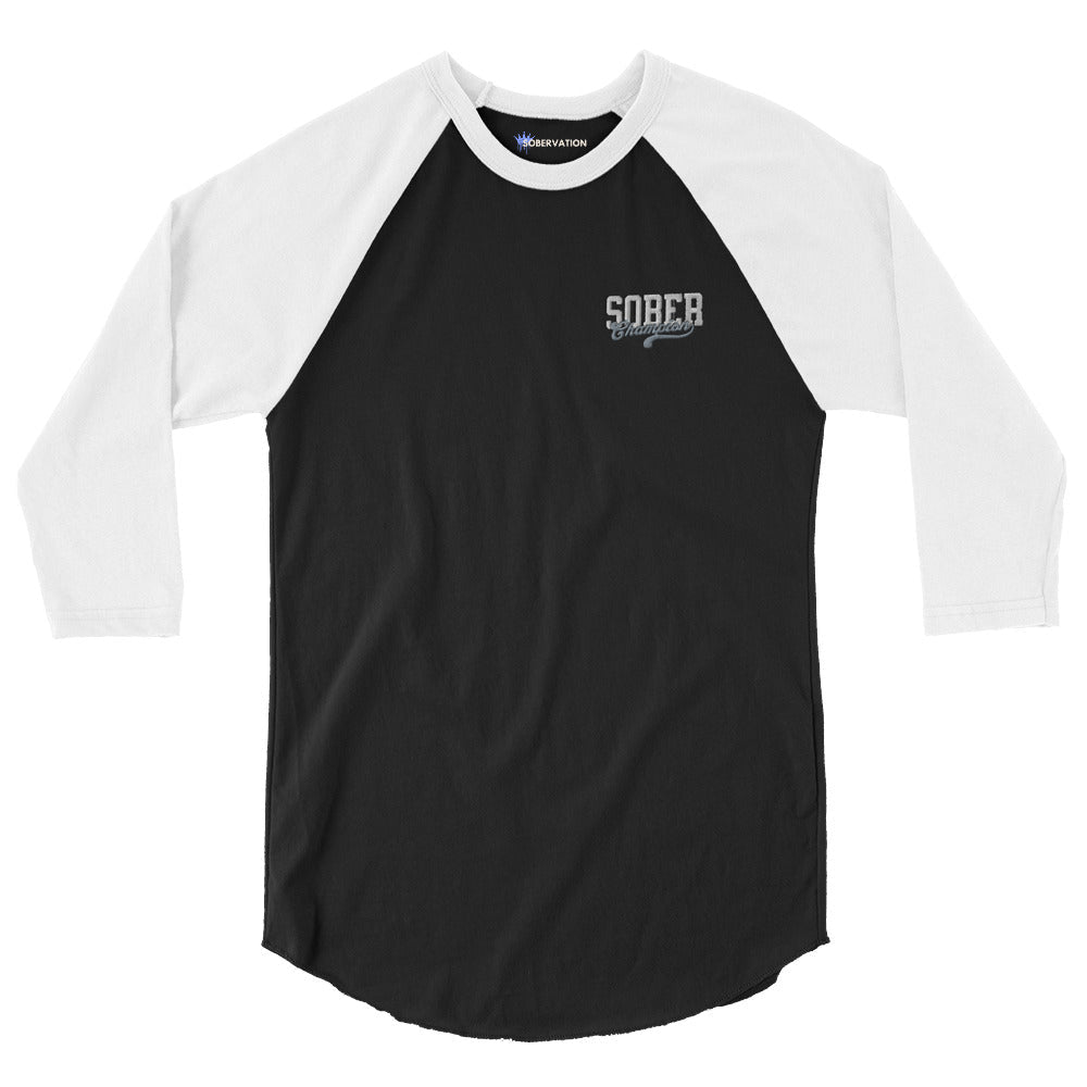 Sober Champion Embroidered Unisex 3/4 Sleeve Raglan Shirt