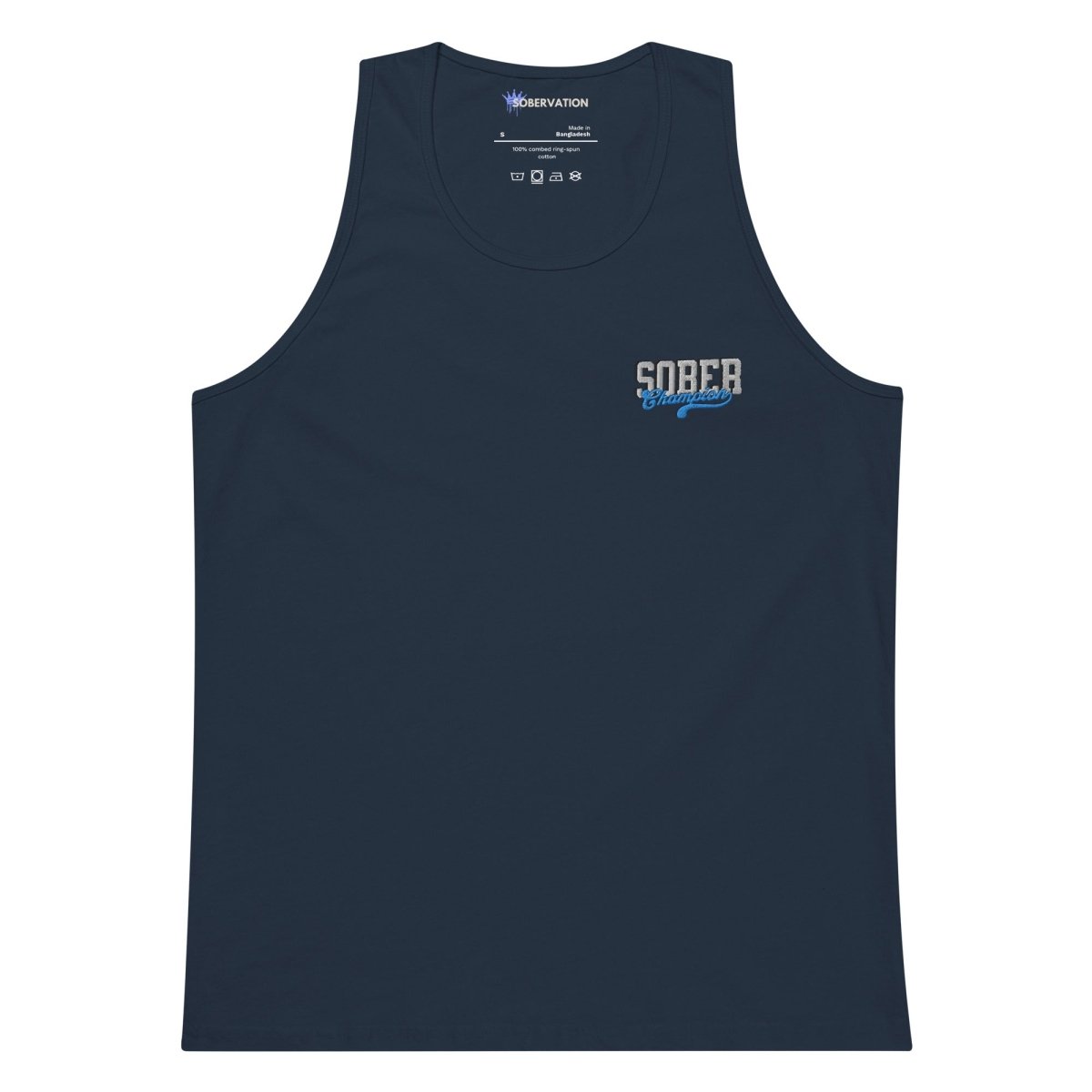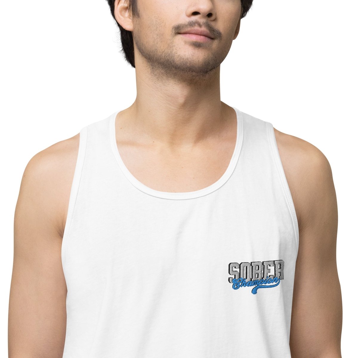 The Sober Champion embroidered tank top is designed for the man who's fought the hardest battle and refuses to quit. Featuring the bold "Sober Champion" design embroidered on the left chest, this premium tank honors the discipline, resilience, and unwavering commitment that defines your recovery journey.