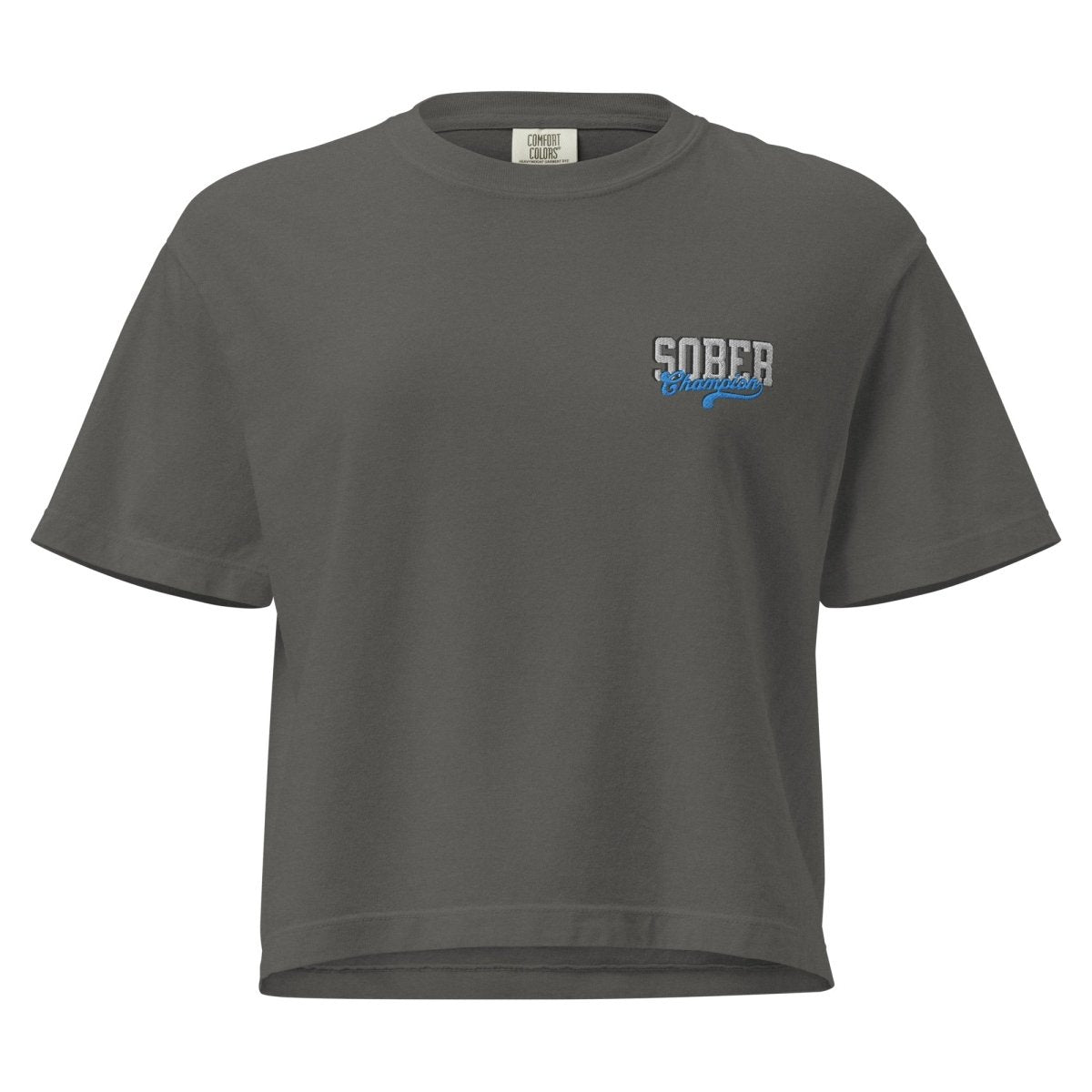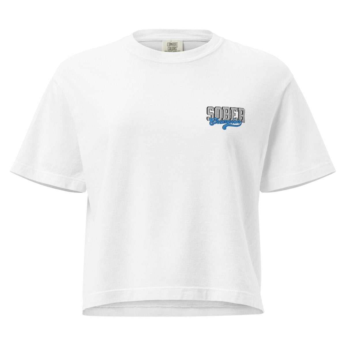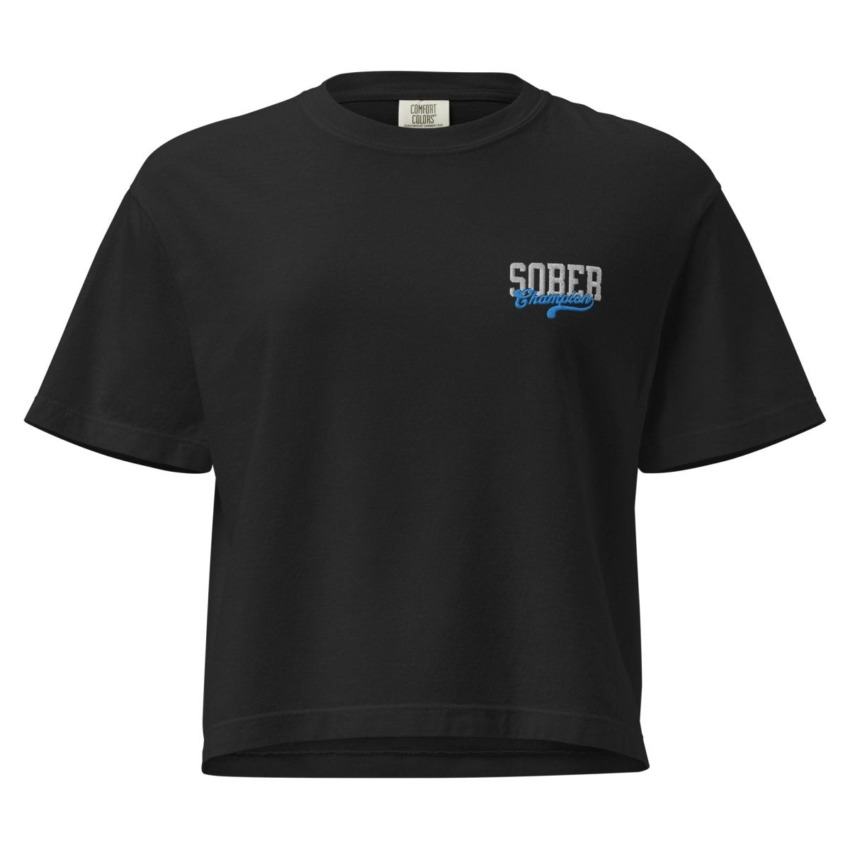 Sober Champion Embroidered Women's Heavyweight Boxy Tee | Recovery Apparel