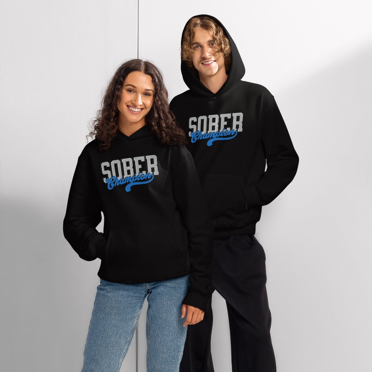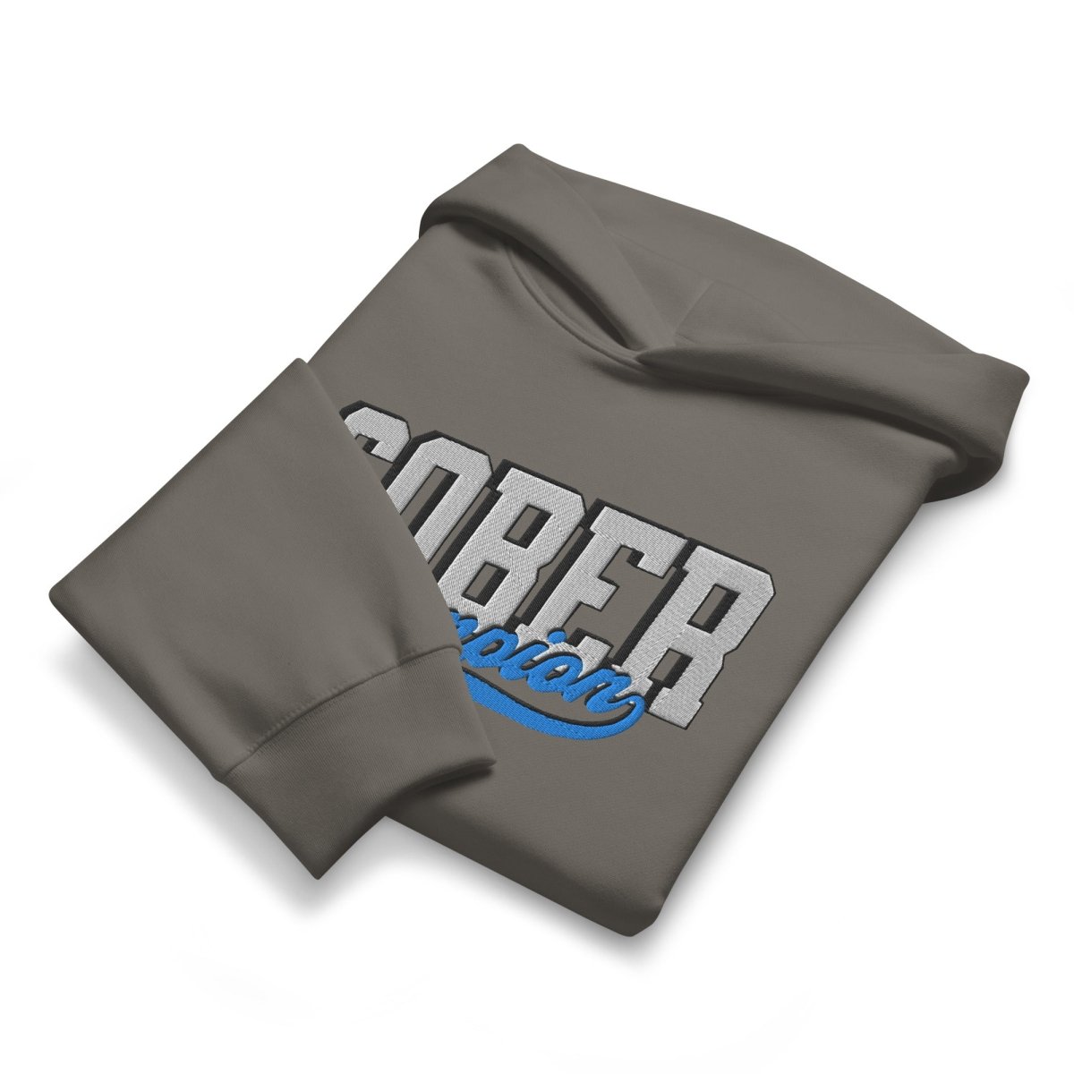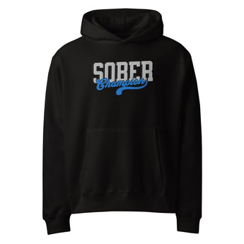 This oversized heavyweight hoodie puts the Sober Champion message front and center with large puff embroidery across the chest. A premium staple for anyone who knows that sobriety isn't just about quitting—it's about rising.