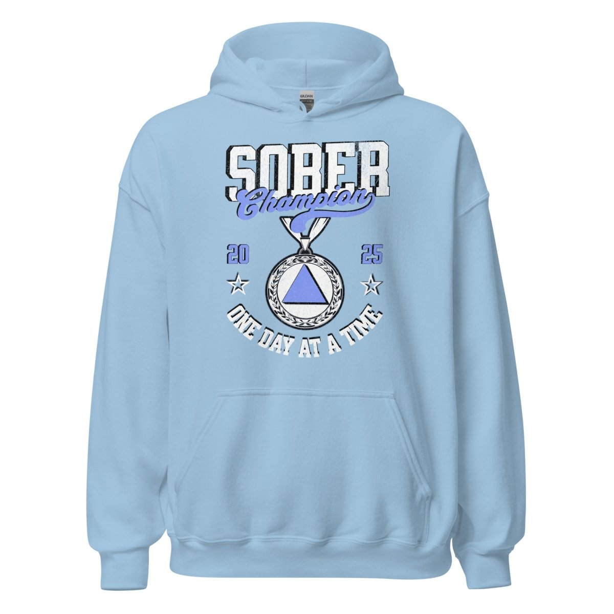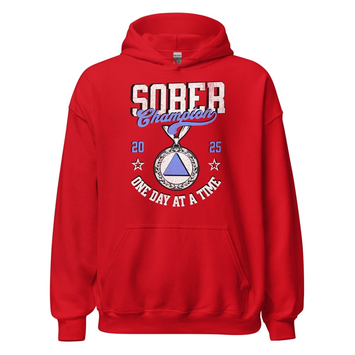 This Sober Champion hoodie features a large, colorful front print celebrating your sobriety, complete with varsity-style lettering, stars, and the reminder: One Day at a Time. Warm, soft, and unapologetically proud—just like the path you’re walking.