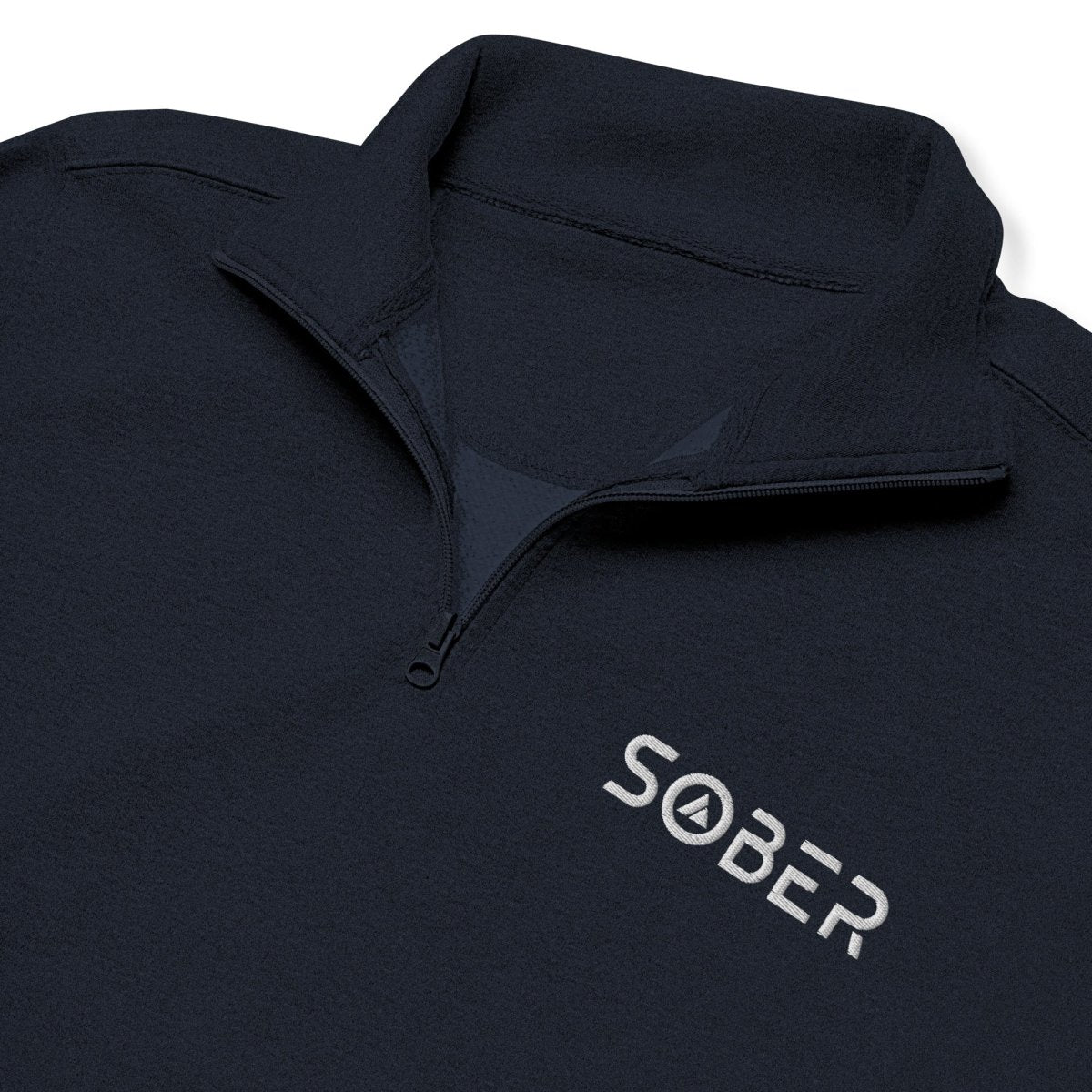 Subtle left-chest embroidery that adds a refined touch to this quarter-zip pullover. The "Sober" design in futuristic Skate Blade font—complete with the integrated sobriety triangle in the O—sits perfectly positioned where it catches attention without overwhelming the clean, classic silhouette. It's recovery symbolism reimagined with modern aesthetics, placed to complement the relaxed fit and versatile styling. Each stitch adds dimension and premium detail that elevates this beyond basic fleece pullovers.