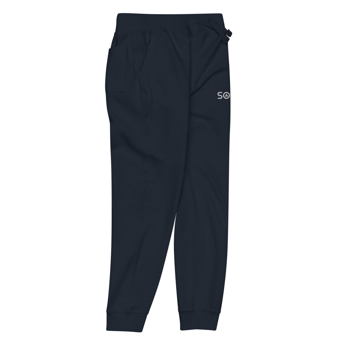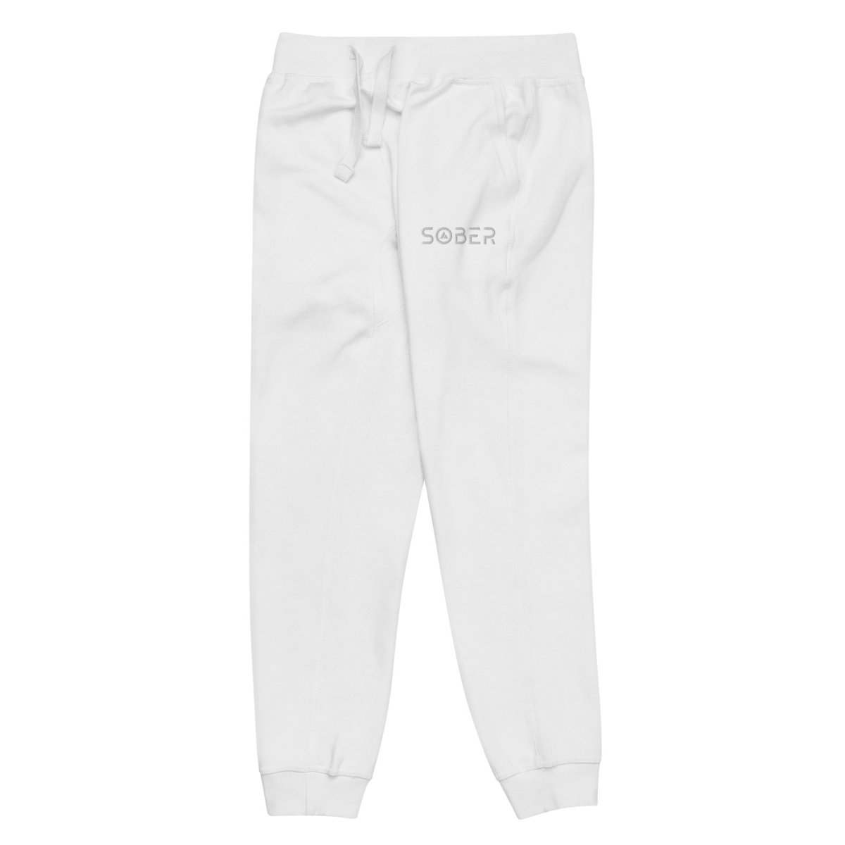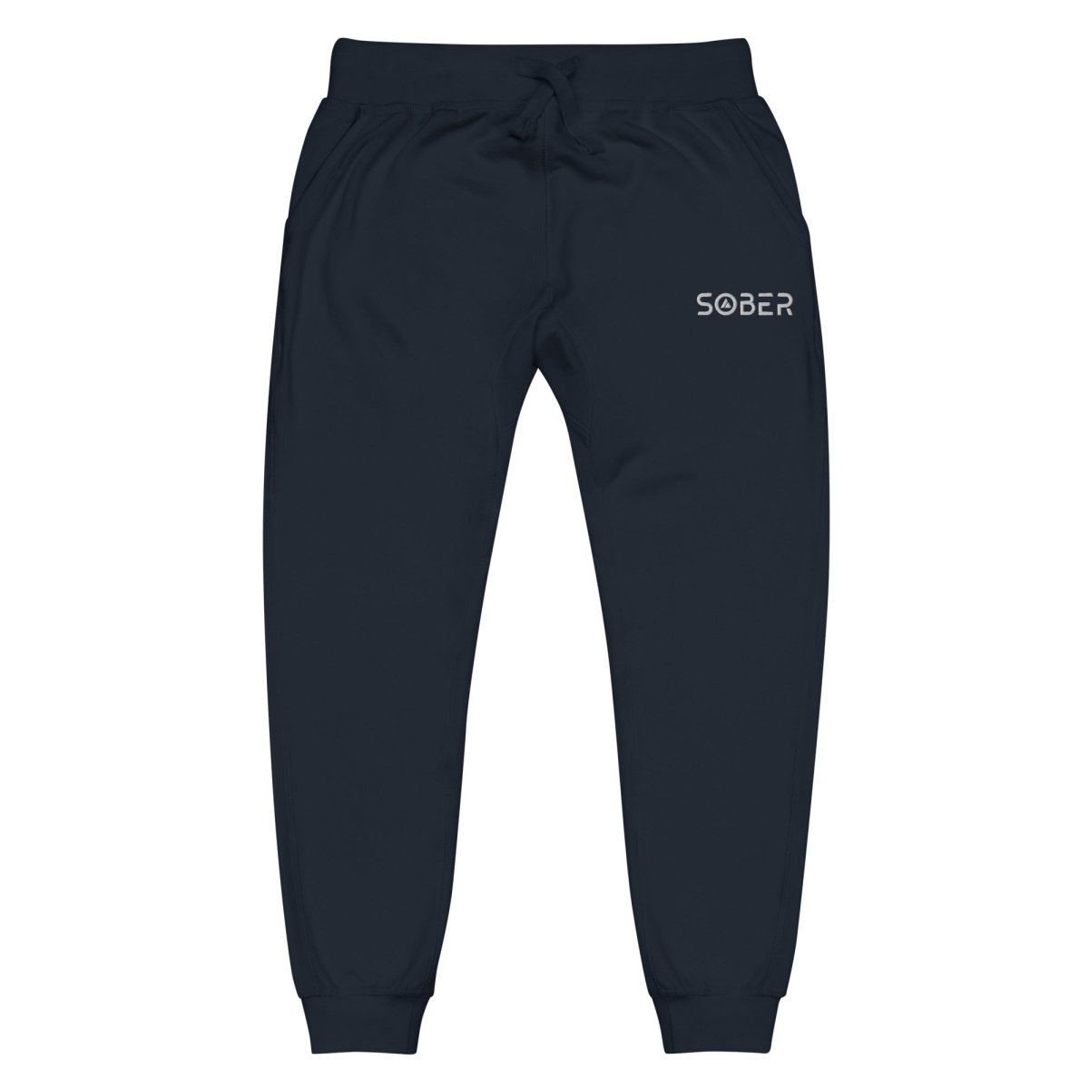 Subtle left-leg embroidery that adds a refined touch to these premium fleece sweatpants. The "Sober" design in futuristic Skate Blade font—complete with the integrated sobriety triangle in the O—sits perfectly positioned where it's visible but not overwhelming. It's recovery symbolism reimagined with modern aesthetics, placed to complement the classic sweatpants silhouette. Each stitch adds dimension and premium detail that elevates these beyond basic loungewear.