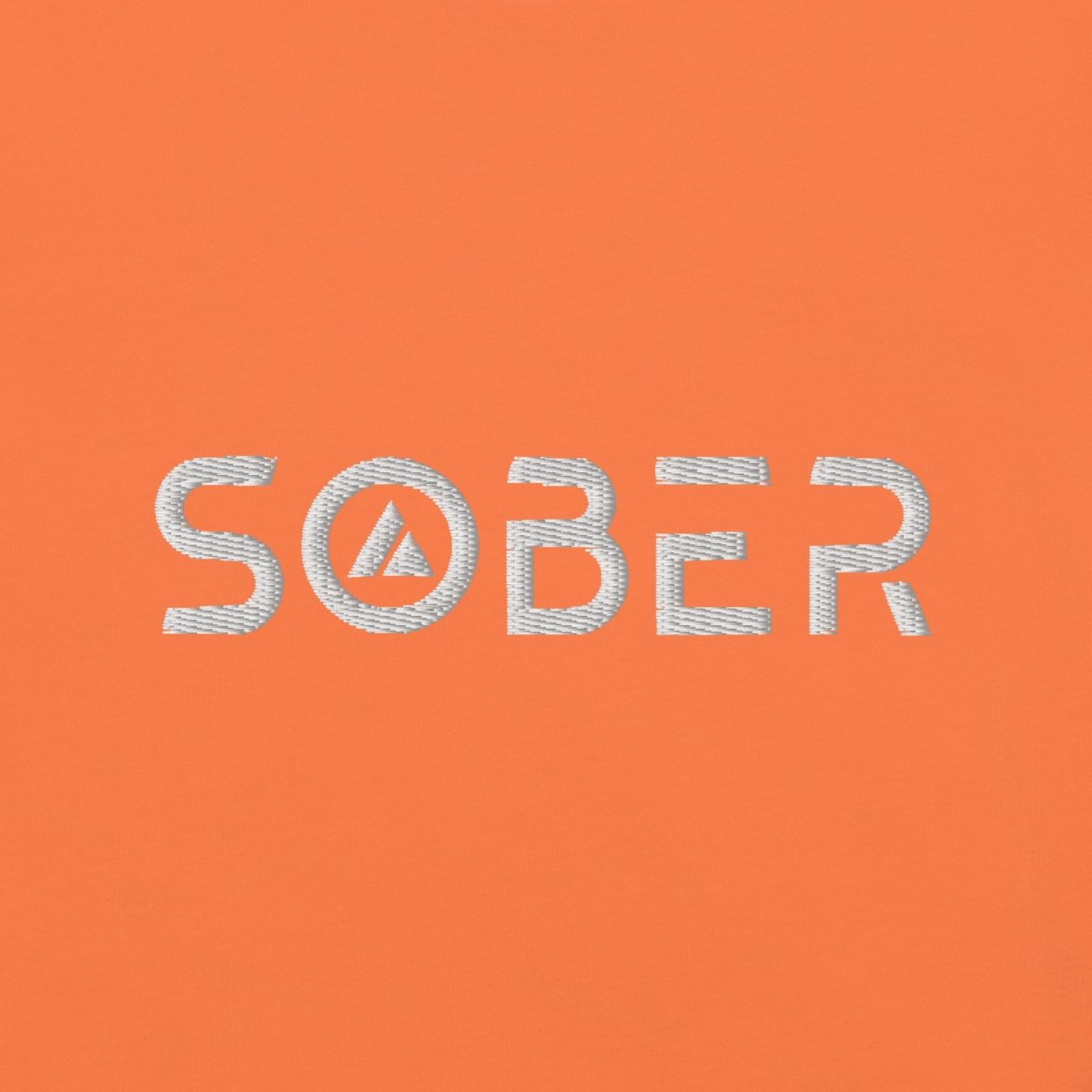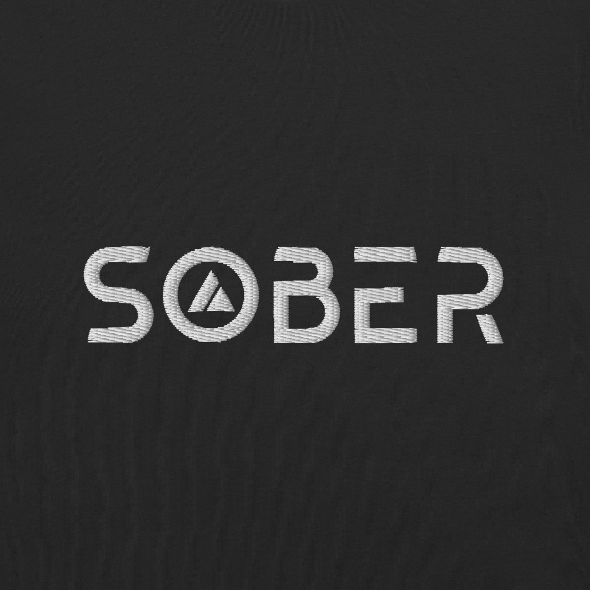 The word "Sober" rendered in futuristic Skate Blade font with a sobriety triangle integrated into the O—this isn't just embroidery, it's a statement. The design merges recovery symbolism with forward-thinking aesthetics, creating a piece that honors your journey while looking unmistakably modern. Each letter is carefully stitched to create dimension and texture that photographs can't fully capture.