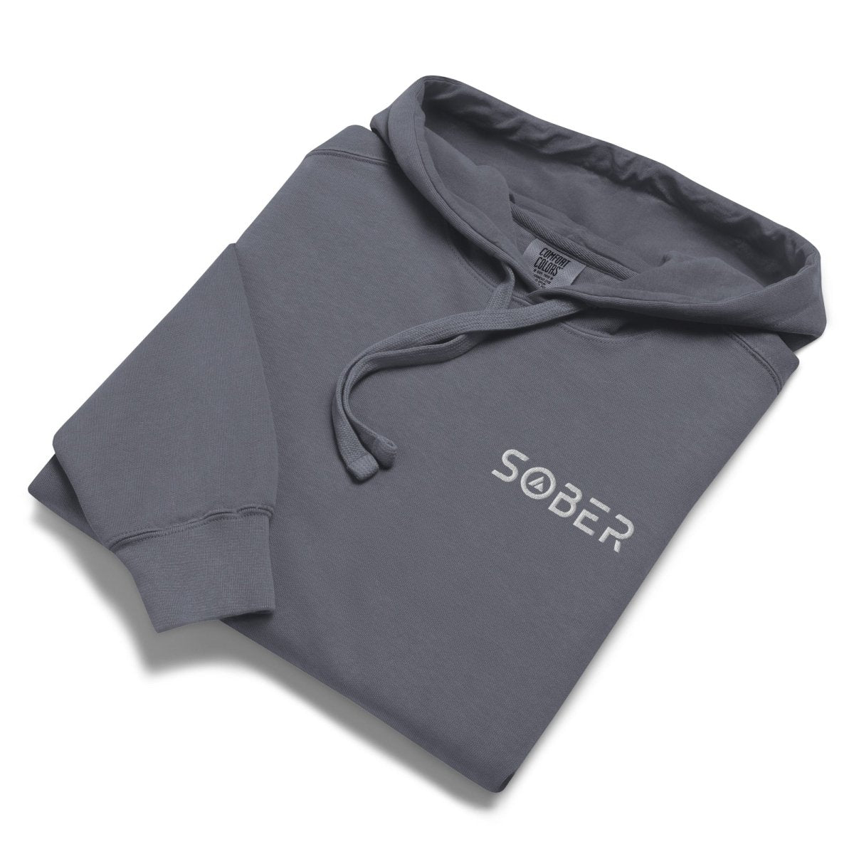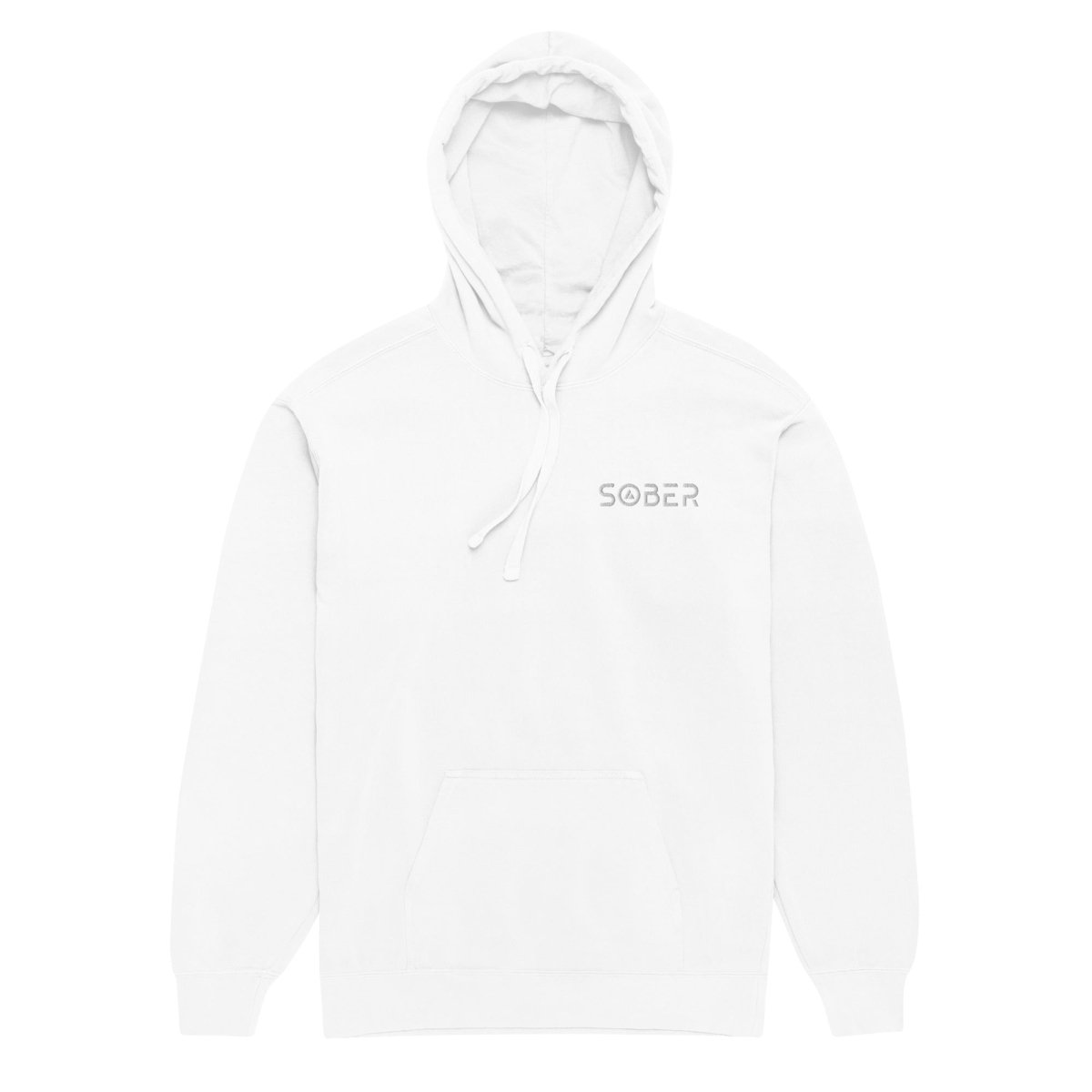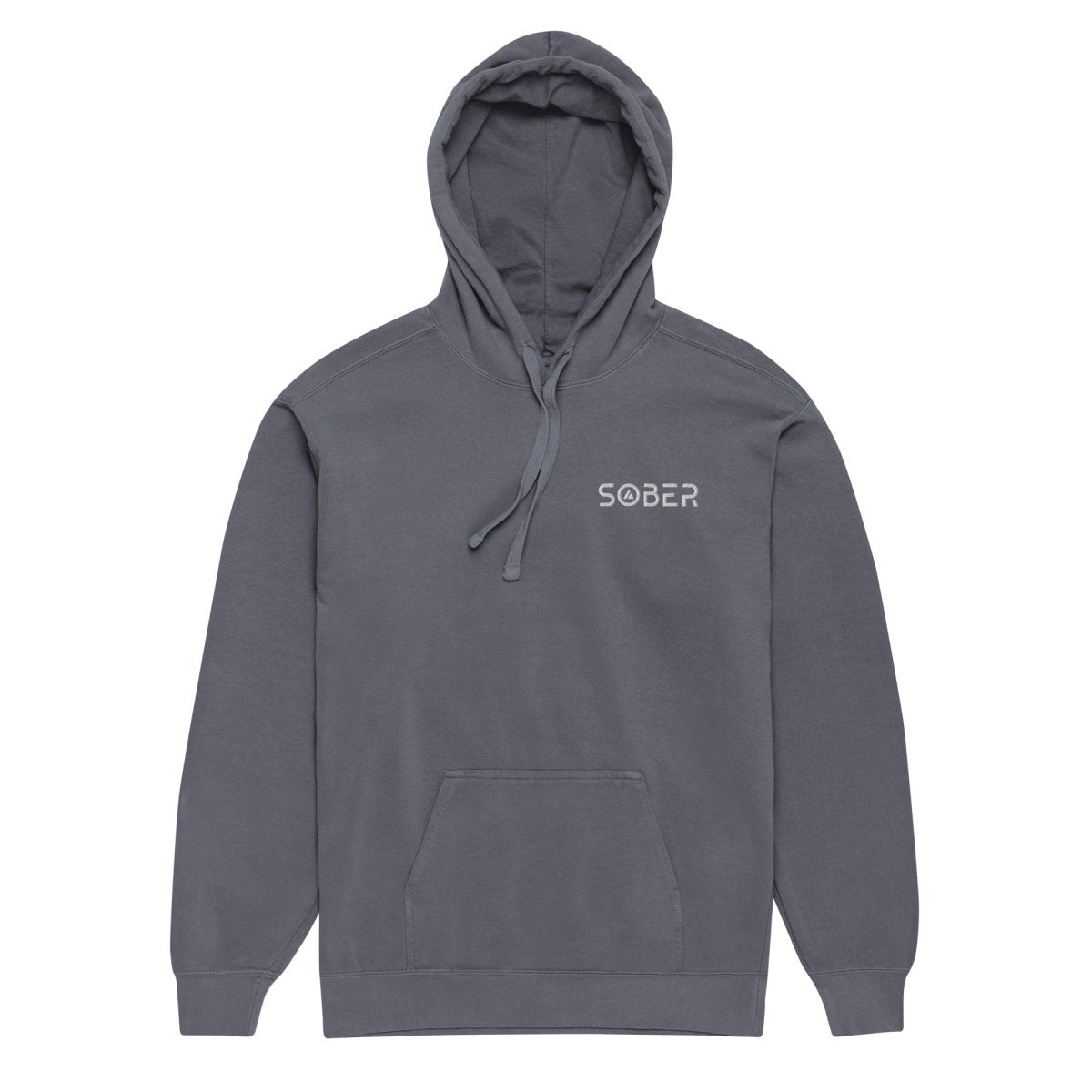 Premium left-chest embroidery that elevates the everyday hoodie. The "Sober" design in futuristic Skate Blade font—complete with the integrated sobriety triangle in the O—sits perfectly positioned on this garment-dyed hoodie. It's recovery symbolism reimagined with modern aesthetics, placed where it makes a statement without overwhelming the relaxed, lived-in character of the piece. Each stitch adds tactile dimension and premium detail that sets this apart from standard hoodies.