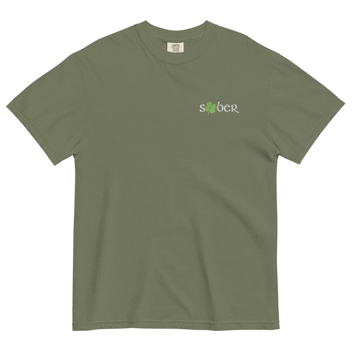 Sober Shamrock Embroidered Heavyweight Tee – Comfort Colors Premium