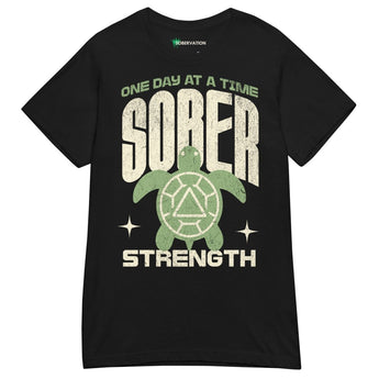 The Sober Strength Women’s Essential Tee combines softness, comfort, and purpose. Featuring the inspiring Recovery Turtle design and the words “One Day at a Time”, this tee represents steady progress and enduring strength. Made with ring-spun cotton for a breathable, easy fit — perfect for everyday wear, reflection, or recovery meetings. Ships in 5–7 business days.