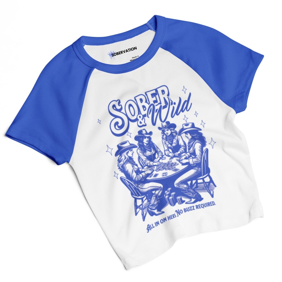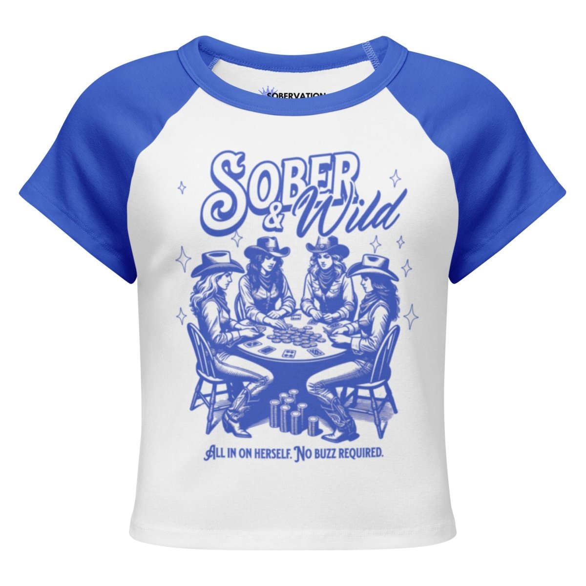 Sober & Wild Women’s Micro Rib Raglan Baby Tee – No Buzz Required