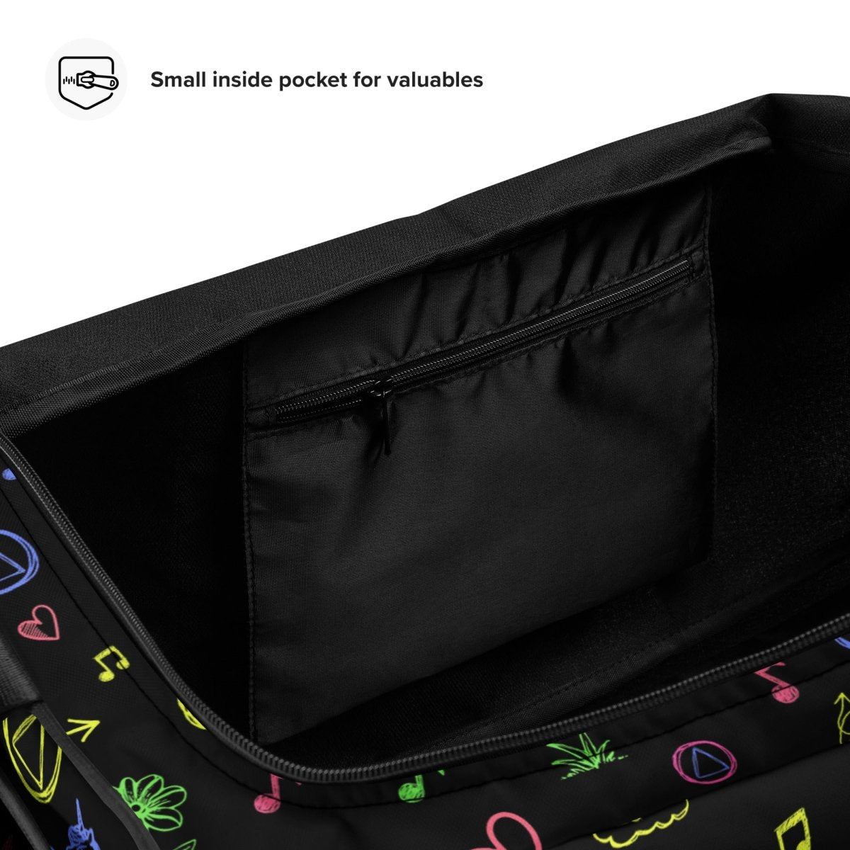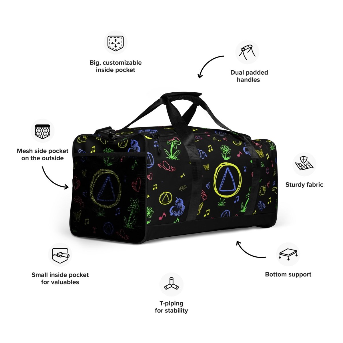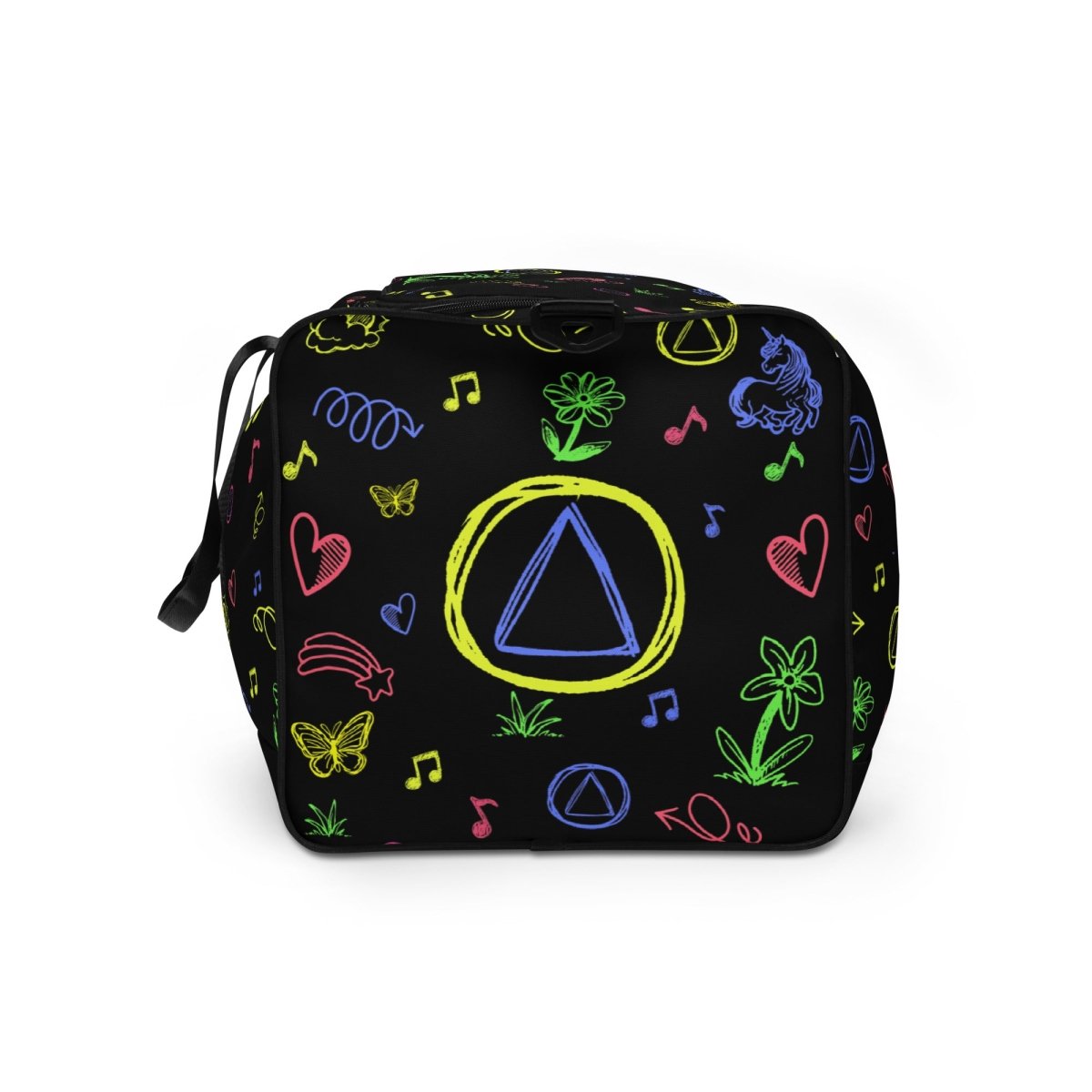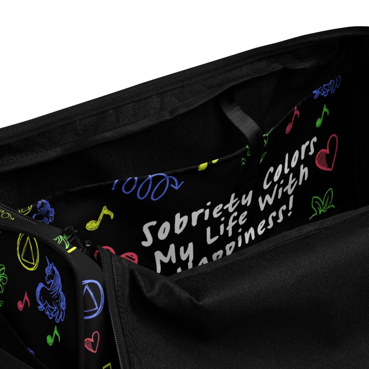 “Sobriety Colors My Life” Doodle Art Duffel Bag – Recovery in Full Color