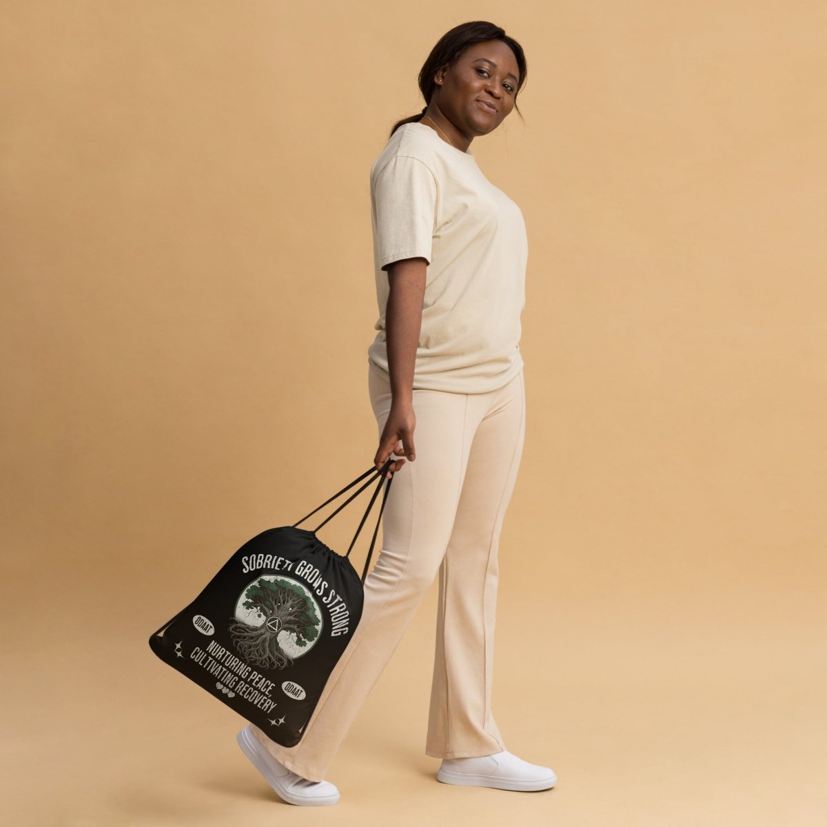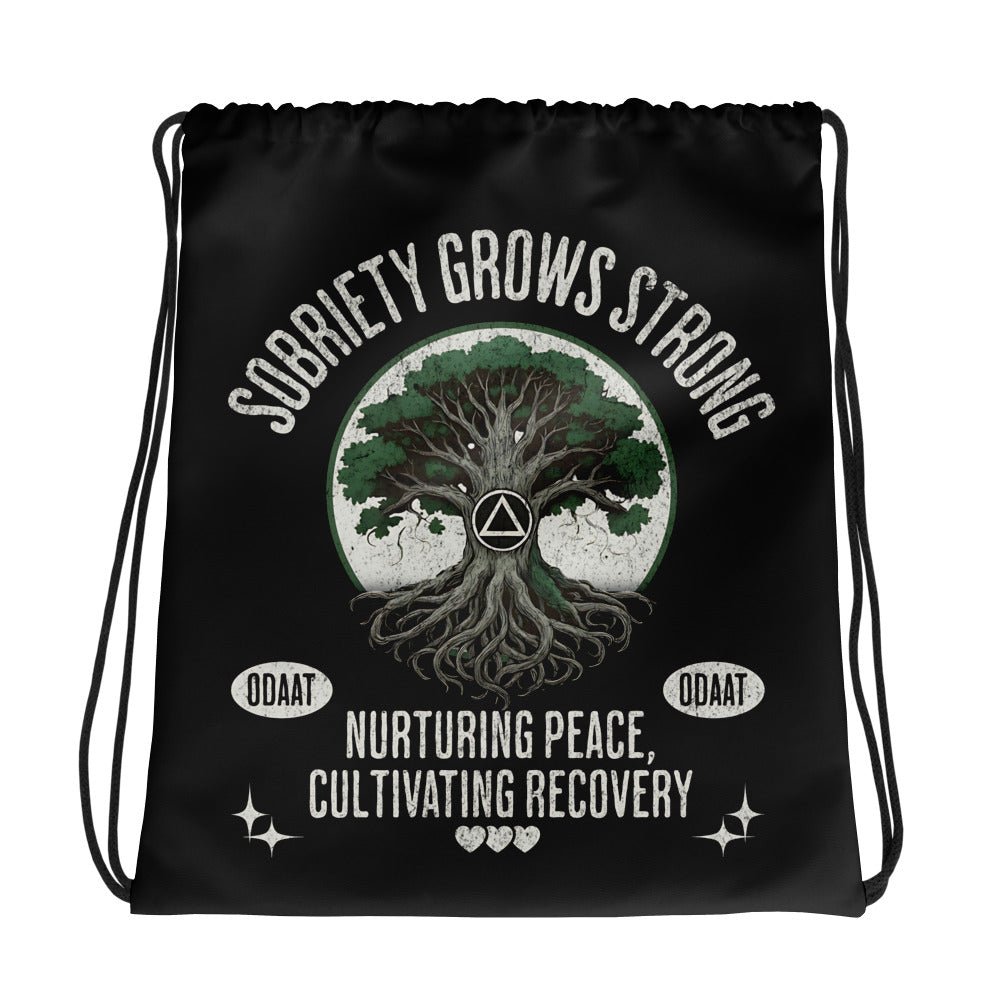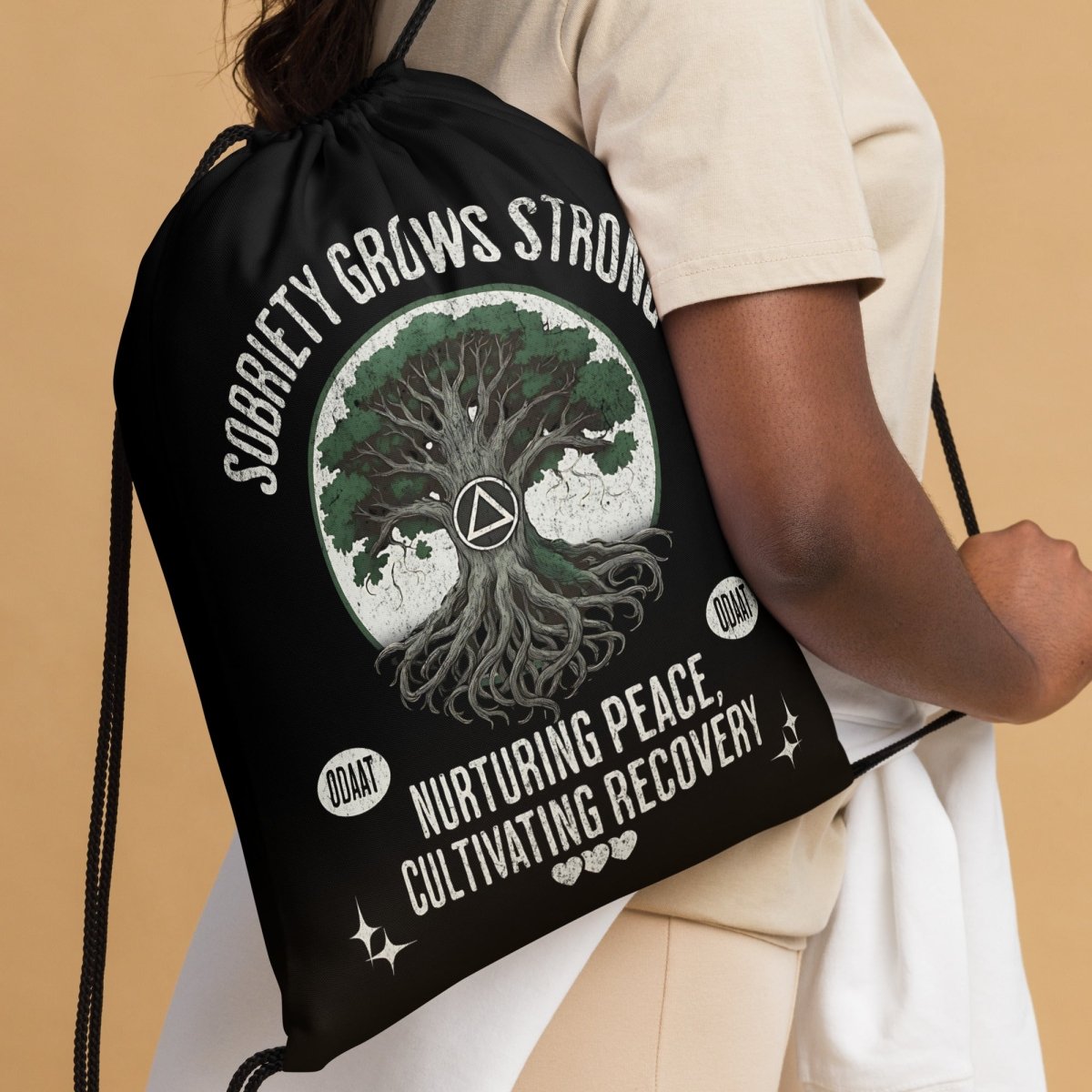 Sobriety Grows Strong Drawstring Bag – Lightweight, Rooted, Ready
