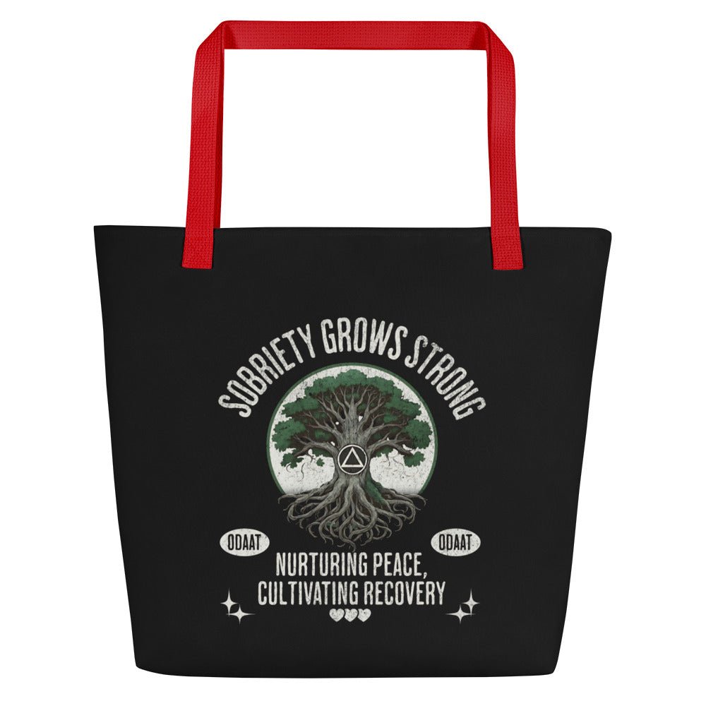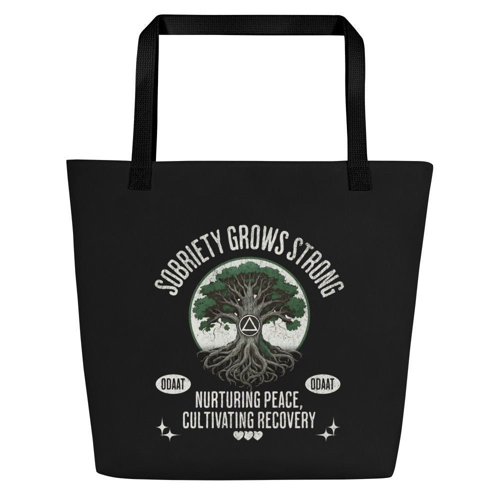 Sobriety Grows Strong Large Tote Bag – Recovery Roots Carryall