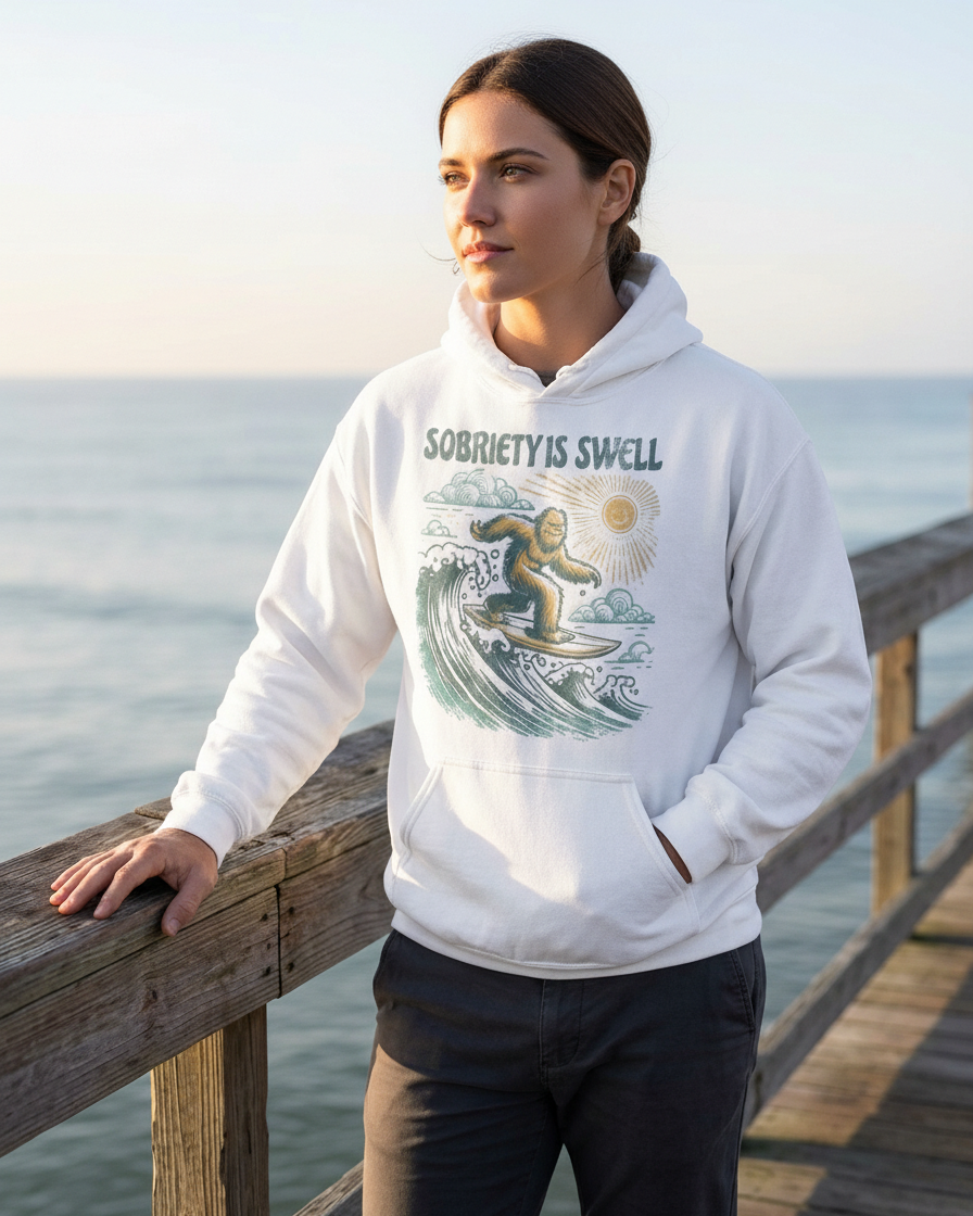 Sobriety Is Swell Bigfoot Hoodie - Unisex Recovery Sweatshirt